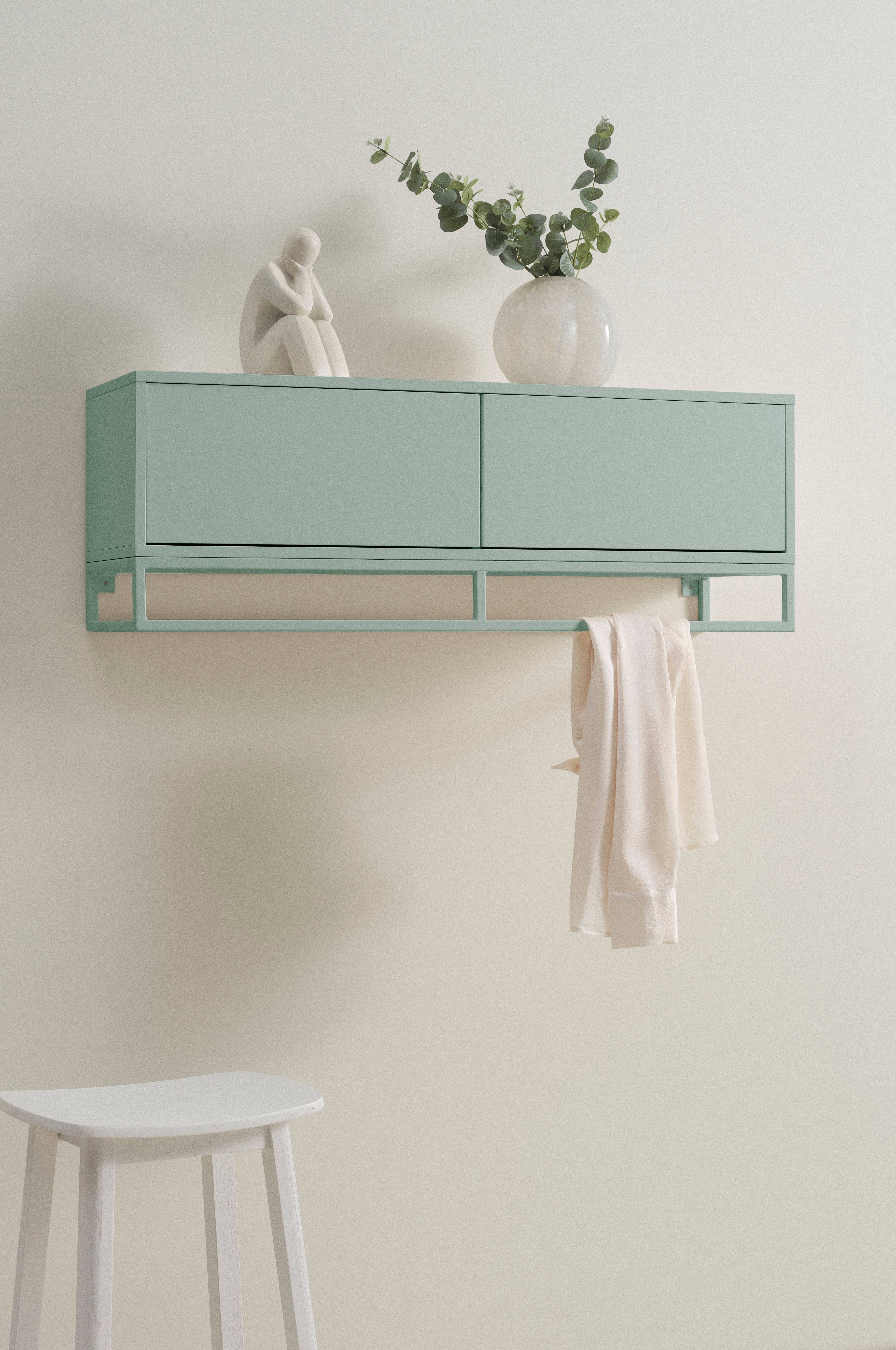 Szafka ścienna z płyty MDF z metalową listwą biegnącą wzdłuż dolnej krawędzi. Ta surowa w swojej formie i stylowa szafka ścienna posiada parę drzwiczek, które otwierają się od strony zewnętrznej krawędzi i spotykają pośrodku szafki. Drzwiczki otwierają się za pomocą mechanizmu puch to open. Dzięki temu szafka jest idealnie gładka, nie ma uchwytów, a mimo to łatwo ją otworzyć. Szafka ścienna świetnie pasuje do przedpokoju, a w komplecie z ławką LYCKEBY stworzy harmonijny zestaw mebli. Elementy wykonane z MDF zostały pokryte lakierem na bazie wody. Metalowa listwa została polakierowana metodą proszkową. Wymaga częściowego montażu. Do produktu dołączona jest instrukcja montażu.