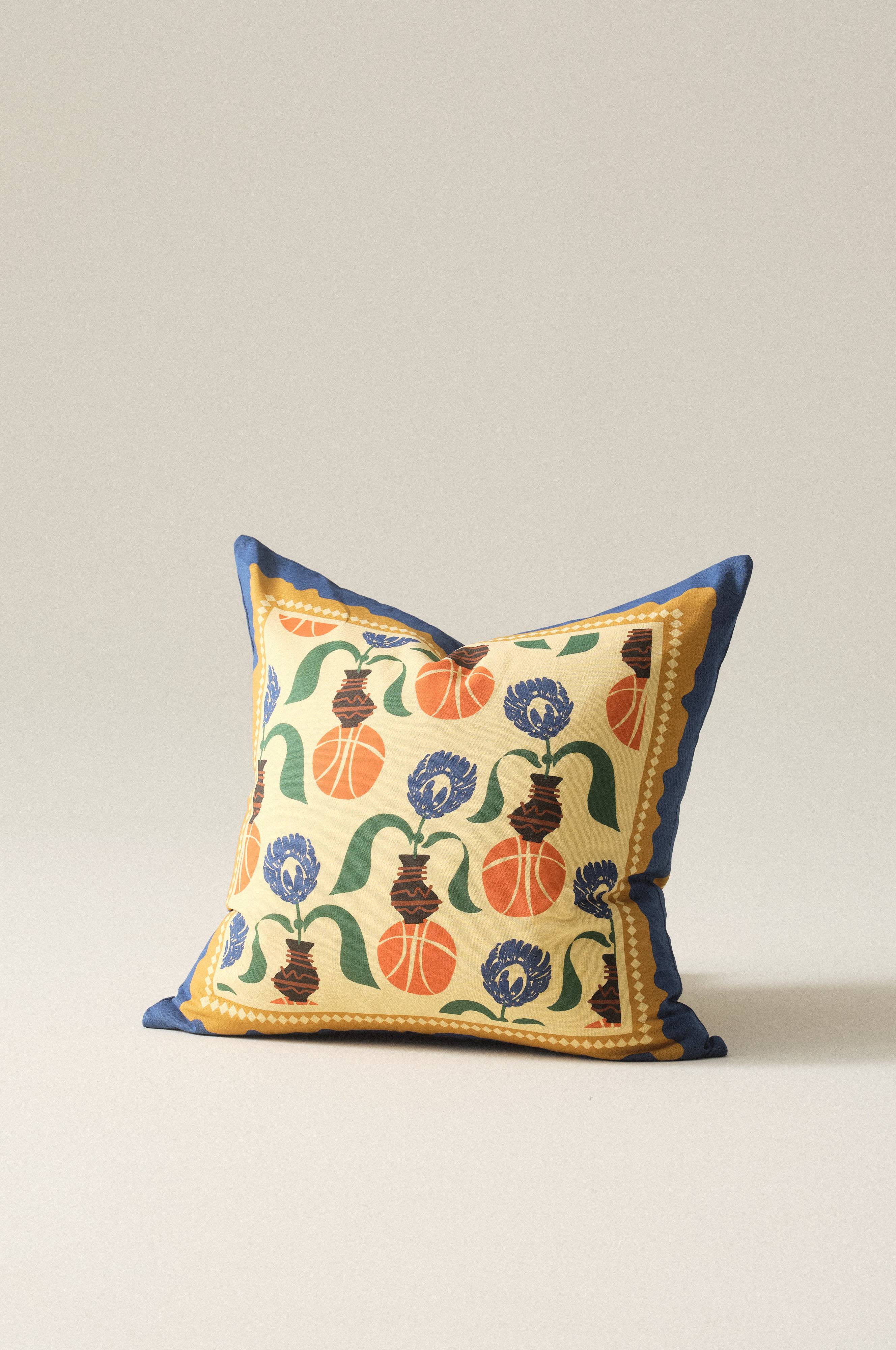 BASKET FLOWER to poszewka na poduszkę o unikalnym designie autorstwa Mikaela Selina. Poszewka wykonana jest z bawełny i odznacza się żywym motywem, w którym klasyczne, piękne płatki kwiatów tworzące drobne wzory zderzają się z młodzieńczą formą ekspresji tworząc kulturowe spotkanie. Obramowanie poszewki zaskakuje symetrycznym kształtem.
