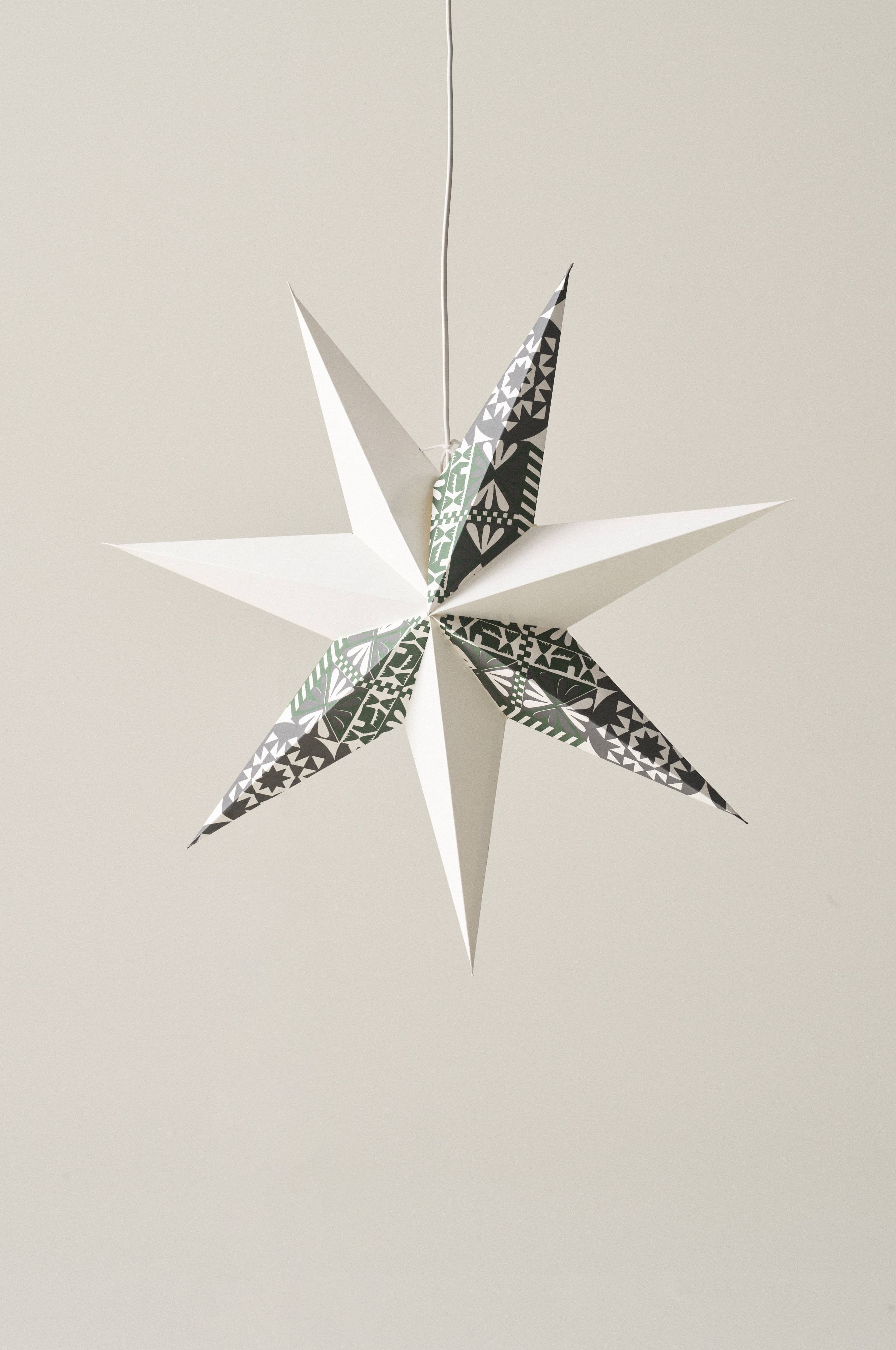 KINTAS to gwiazdka bożonarodzeniowa o unikalnym wzorze autorstwa Mikaela Selina. Papierowa gwiazda ma klasyczny i tradycyjny kształt, a kolor i asymetryczny wzór przyciągają uwagę. Gdy powiesisz KINTAS w swoim adwentowym oknie, stworzysz piękną świąteczną atmosferę.