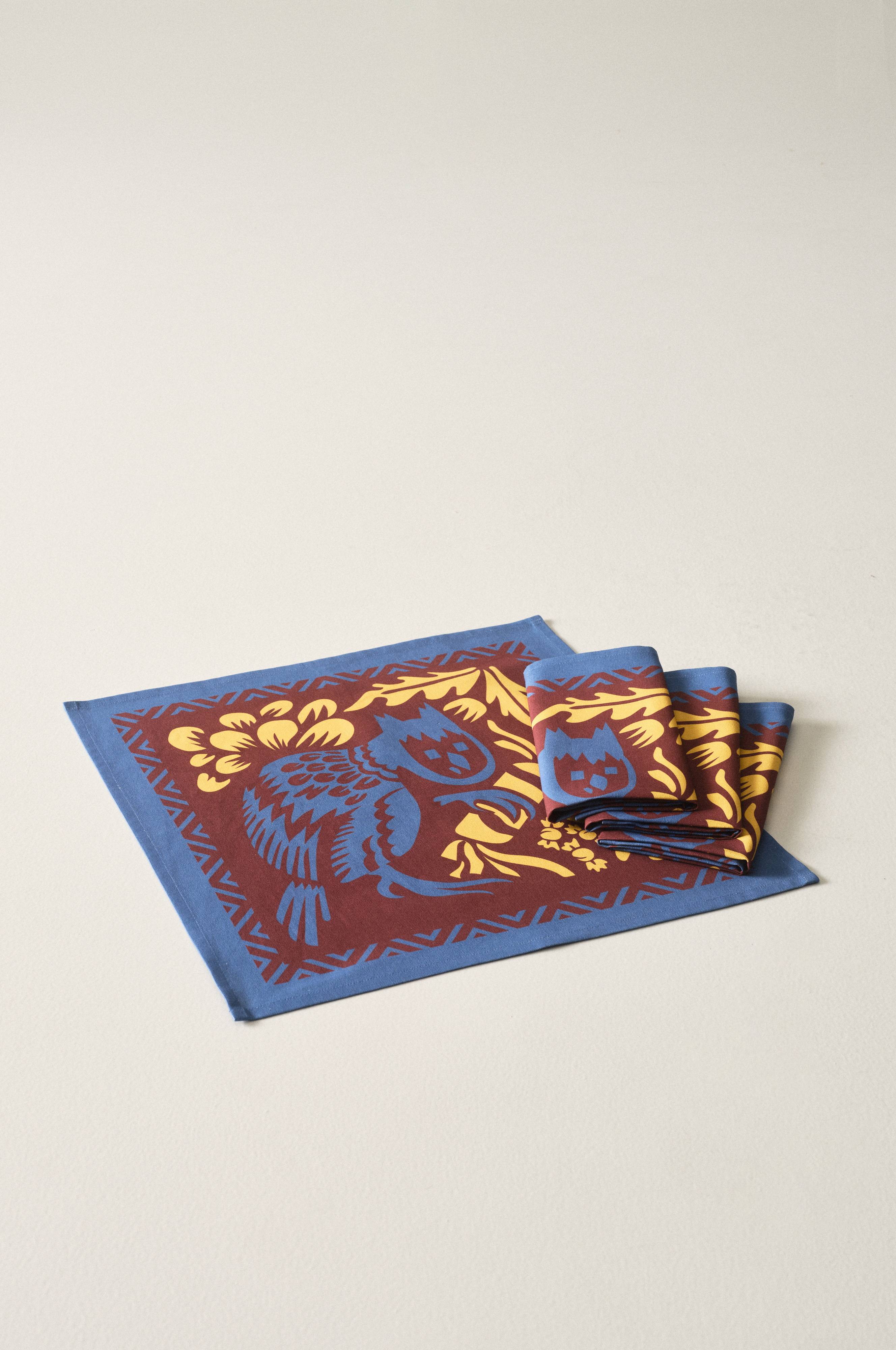 OWL to 4 serwetki o unikalnym designie autorstwa Mikaela Selina. Serwetki wykonane są z przyjemnej bawełny, inspiracją dla wzoru w ciepłych i soczystych kolorach były klasyczne bożonarodzeniowe motywy, które zostały wzbogacone nutą retro.
