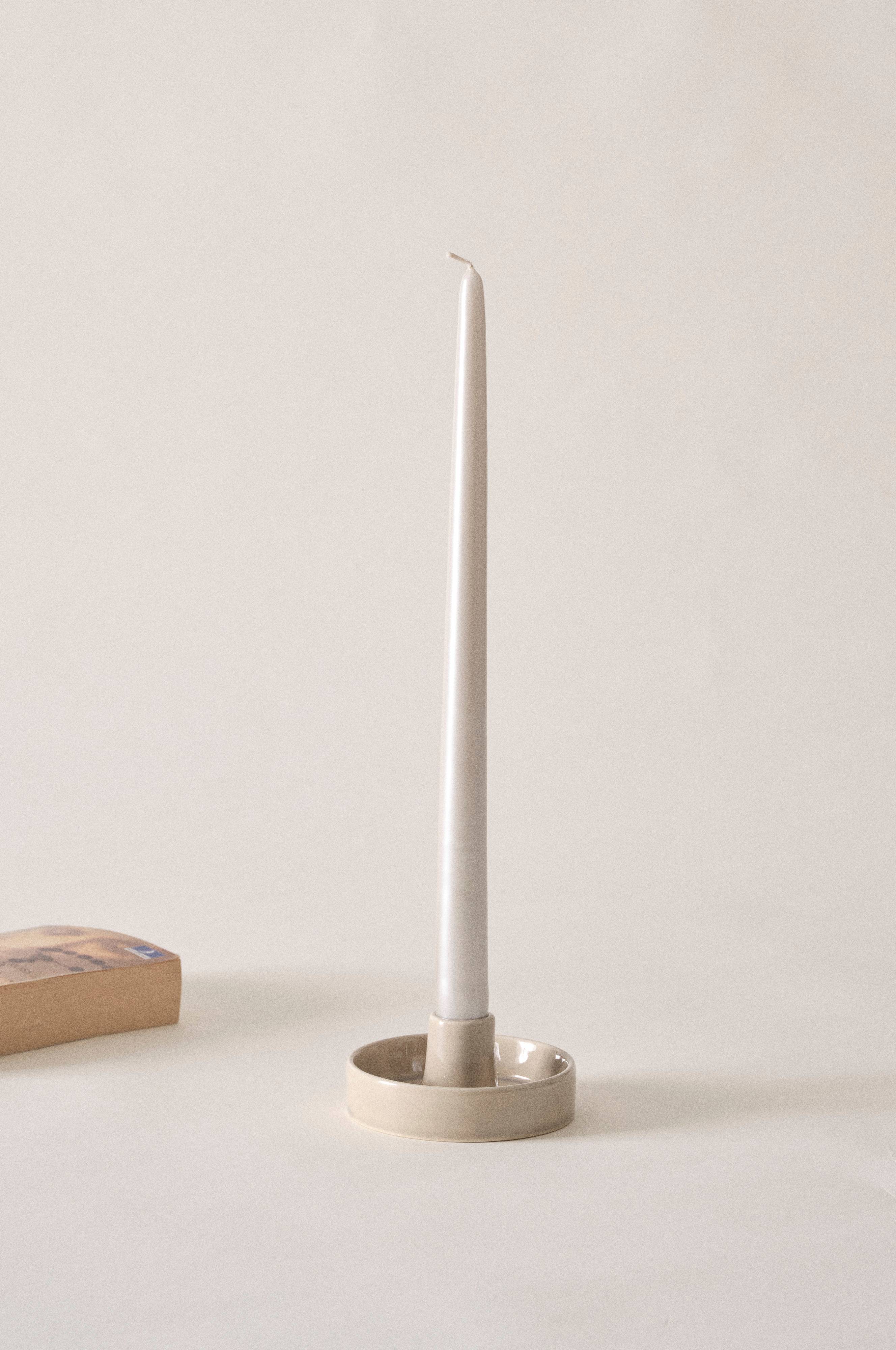 Ręcznie wykonany świecznik z ceramiki. Świecznik ten odznacza się stylowym i klasycznym designem a jego powierzchnię pokrywa glazura w ślicznym odcieniu. Świecznik będzie się wspaniale komponować z wnętrzami urządzonymi w klasycznym, rustykalnym stylu, odnajdzie się również w nowoczesnych, surowych aranżacjach. Wygodny brzeg wokół podstawy świecznika zabezpieczy obrus lub blat przed woskiem spadającym z palącej się świecy, dzięki czemu na powierzchni nie pojawią się plamy. Wspaniałe ręczne wykonanie sprawia, że każdy świecznik jest wyjątkowy.