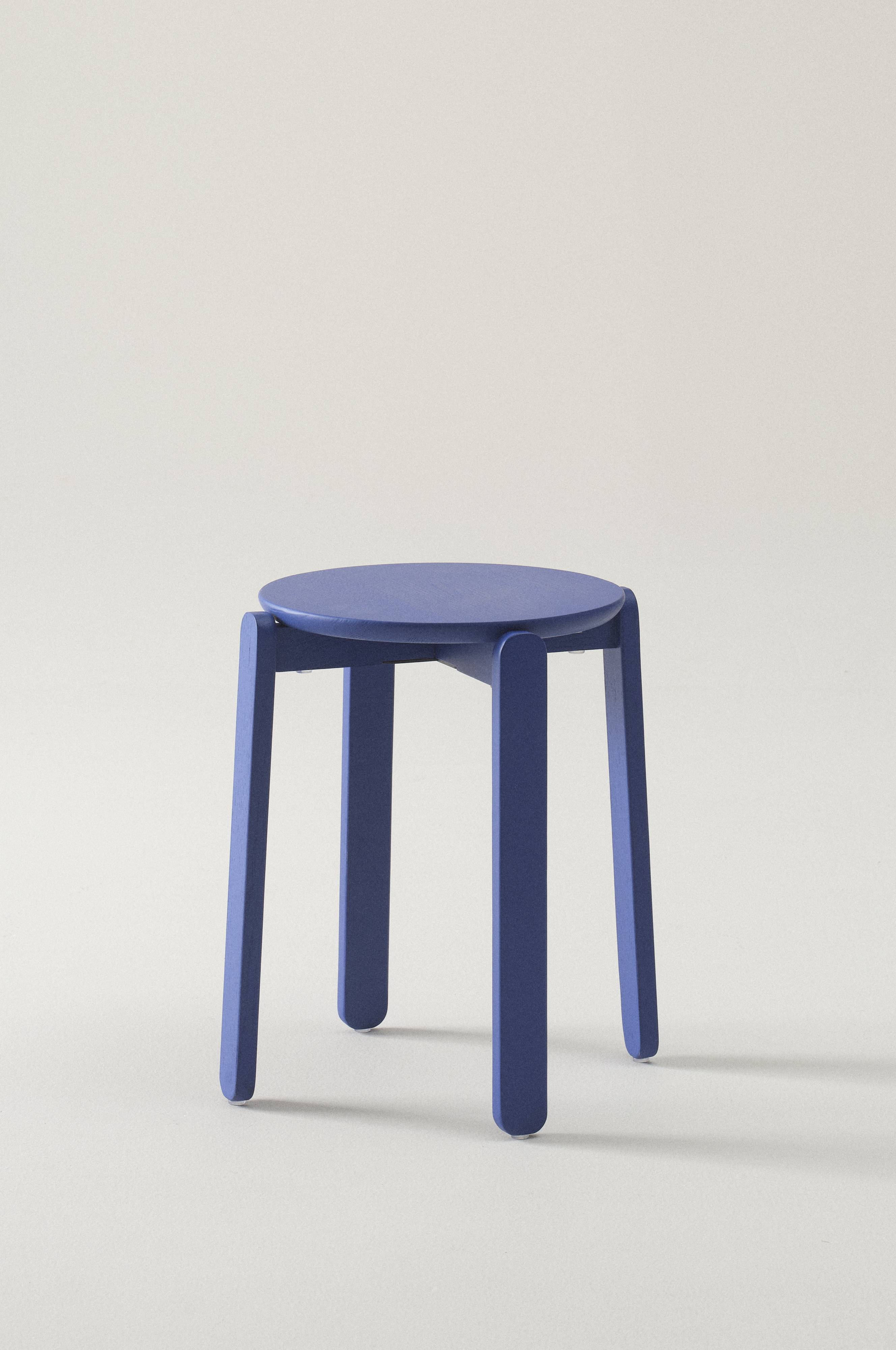 Okrągły stołek z litego jesionu z certyfikatem FSC, którego powierzchnia została pokryta farbą. Stołek odznacza się pięknym designem a urocze nogi nawiązują do wpływów skandynawskich. Wymaga częściowego montażu. Do produktu dołączona jest instrukcja.