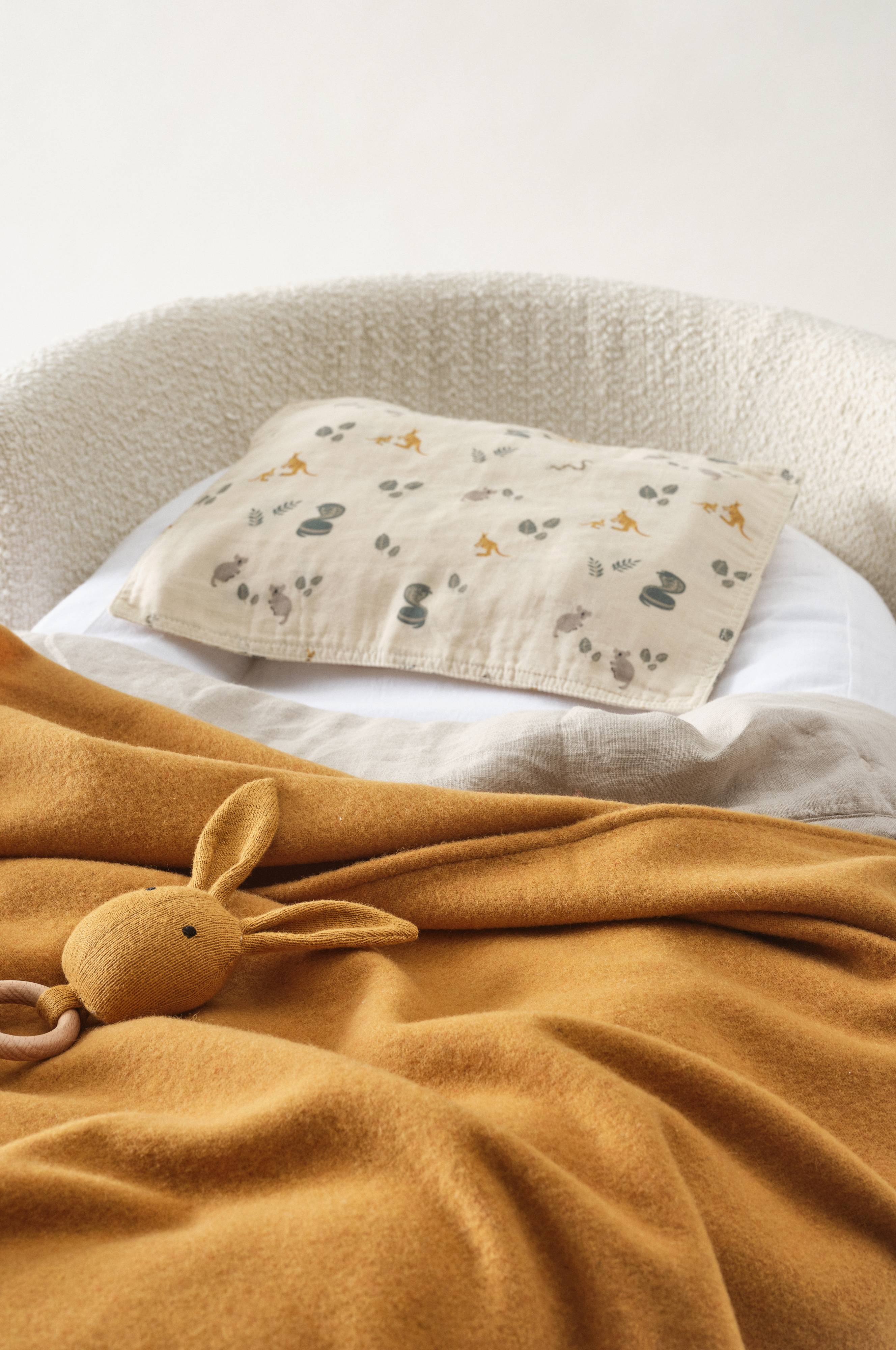 Miły w dotyku kocyk dziecięcy wykonany z 100% wełny. Wełna to fantastyczny materiał, który zawsze odpowiednio grzeje i oddycha, więc rzadko będzie pod nim za ciepło lub za zimno. Miękki i przyjemny kocyk powstał z wełny w jednym, łagodnym kolorze, a jego brzeg został obrębiony. Kocyk świetnie pasuje zarówno do wózka, jak i do kojca. Gramatura 230 g/m².