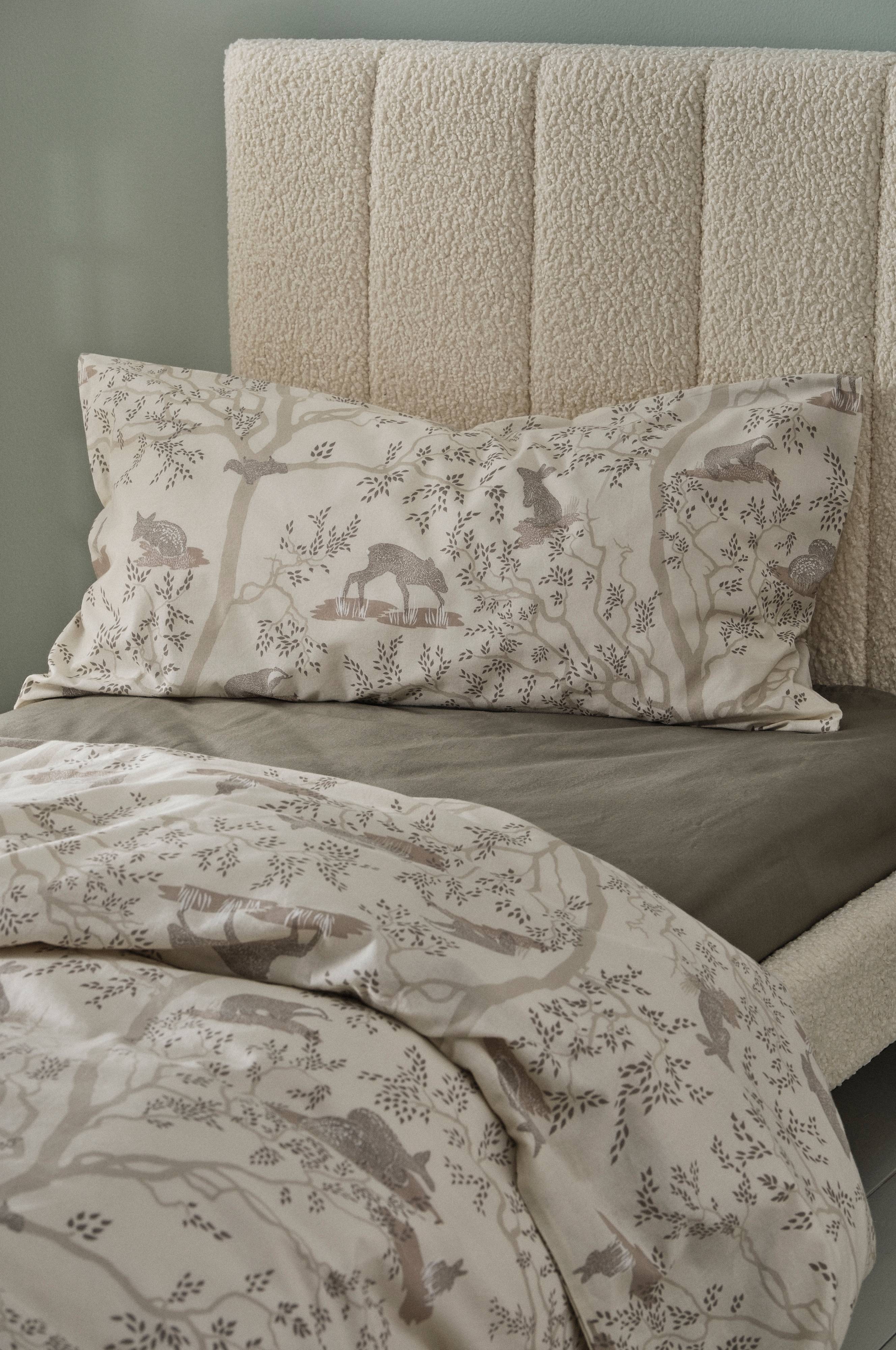 Poszewka na poduszkę z ekologicznej bawełny z wzorzystym nadrukiem w harmonijnych kolorach. Materiał został poddany praniu enzymatycznemu, dzięki czemu ma ciekawy, lekko znoszony wygląd. Gęstość splotu materiału wynosi 144 TC. (Gęstość splotu materiału oznacza ilość przeplecionych ze sobą nici, thread count, na cal kwadratowy materiału. Im wyższa gęstość tym lepsza jakość).
