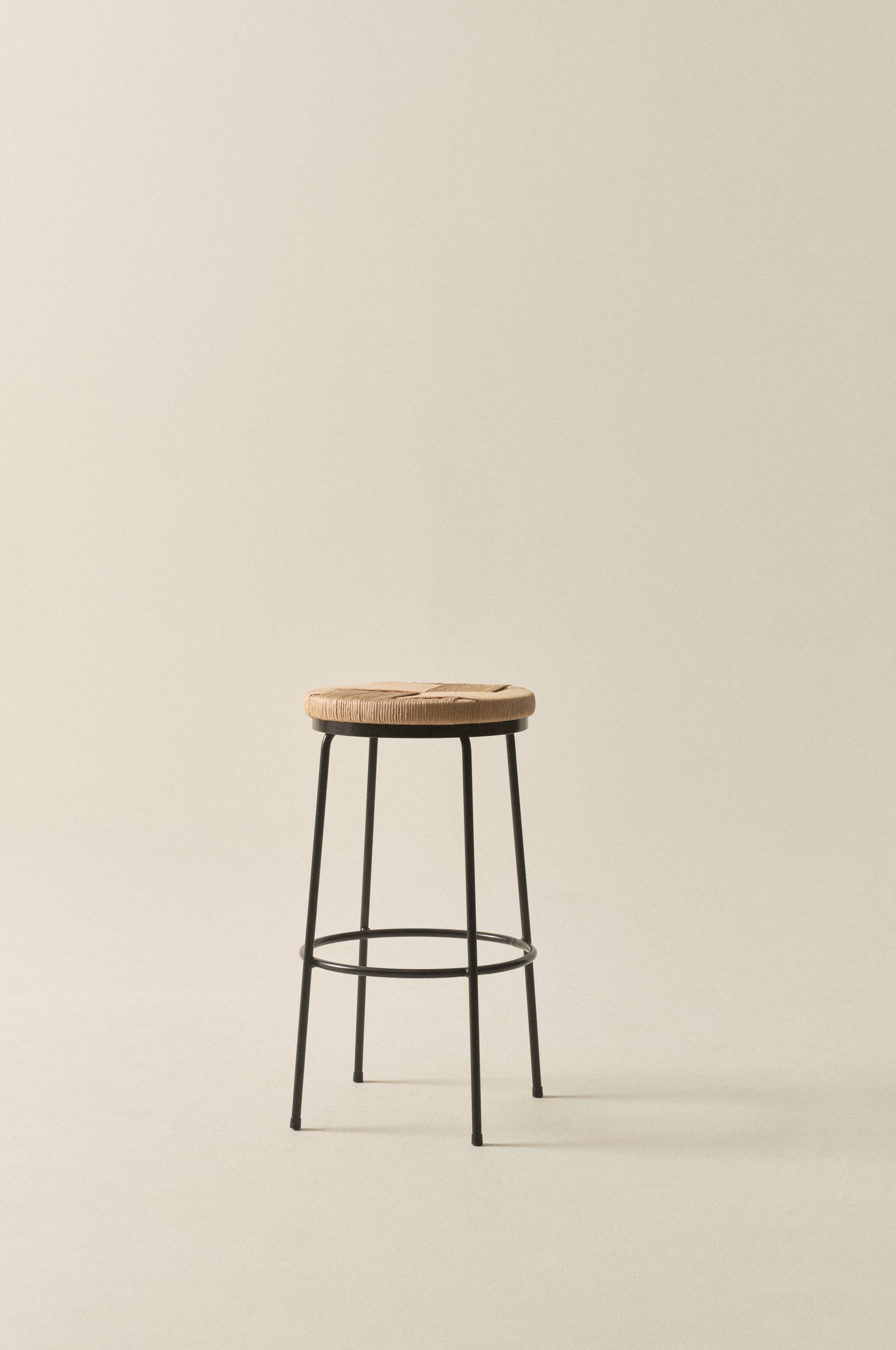 Stołek barowy ze stali, którego siedzenie wykonane jest z naturalnego, papierowego sznurka uplecionego w piękny wzór. Stelaż siedzenia jest z brzozy posiadającej oznaczenie FSC. Stołek posiada praktyczne drążki zapewniające wygodne oparcie dla stóp. MARINO to klasyczny stołek barowy, którego wysokość jest odpowiednia dla Twojej wyspy kuchennej. Żelazna rama pomalowana została metodą proszkową.