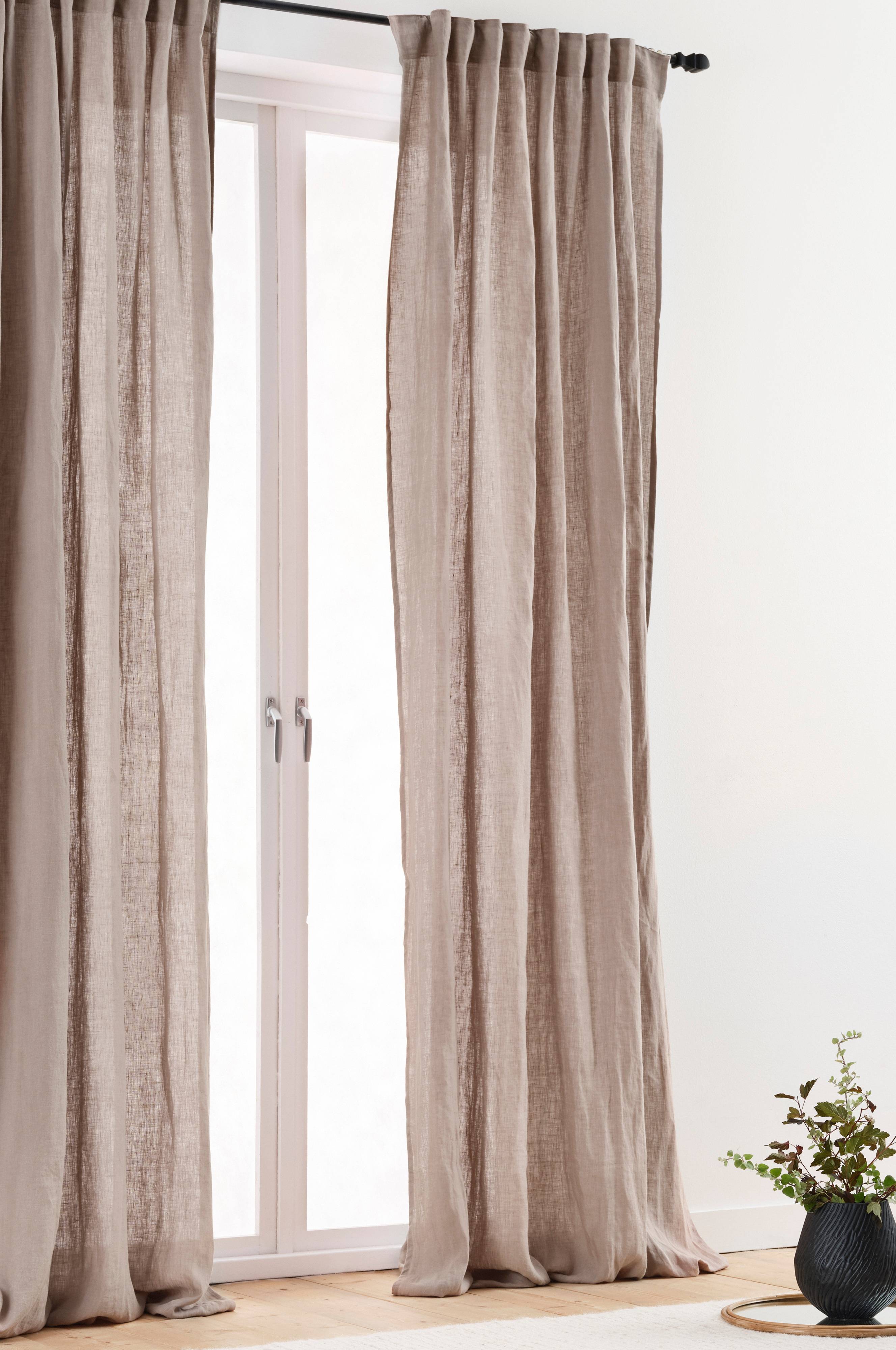 Dwie zasłony z pięknej lnianej tkaniny. Zasłony mają wszytą taśmę wielofunkcyjną. Zasłony można zawiesić na haczykach, tunelu lub krytych szelkach. MEJA to kolekcja gładkich tkanin w pięknych odcieniach. Połączenie koloru i jakości tworzy harmonię i równowagę.