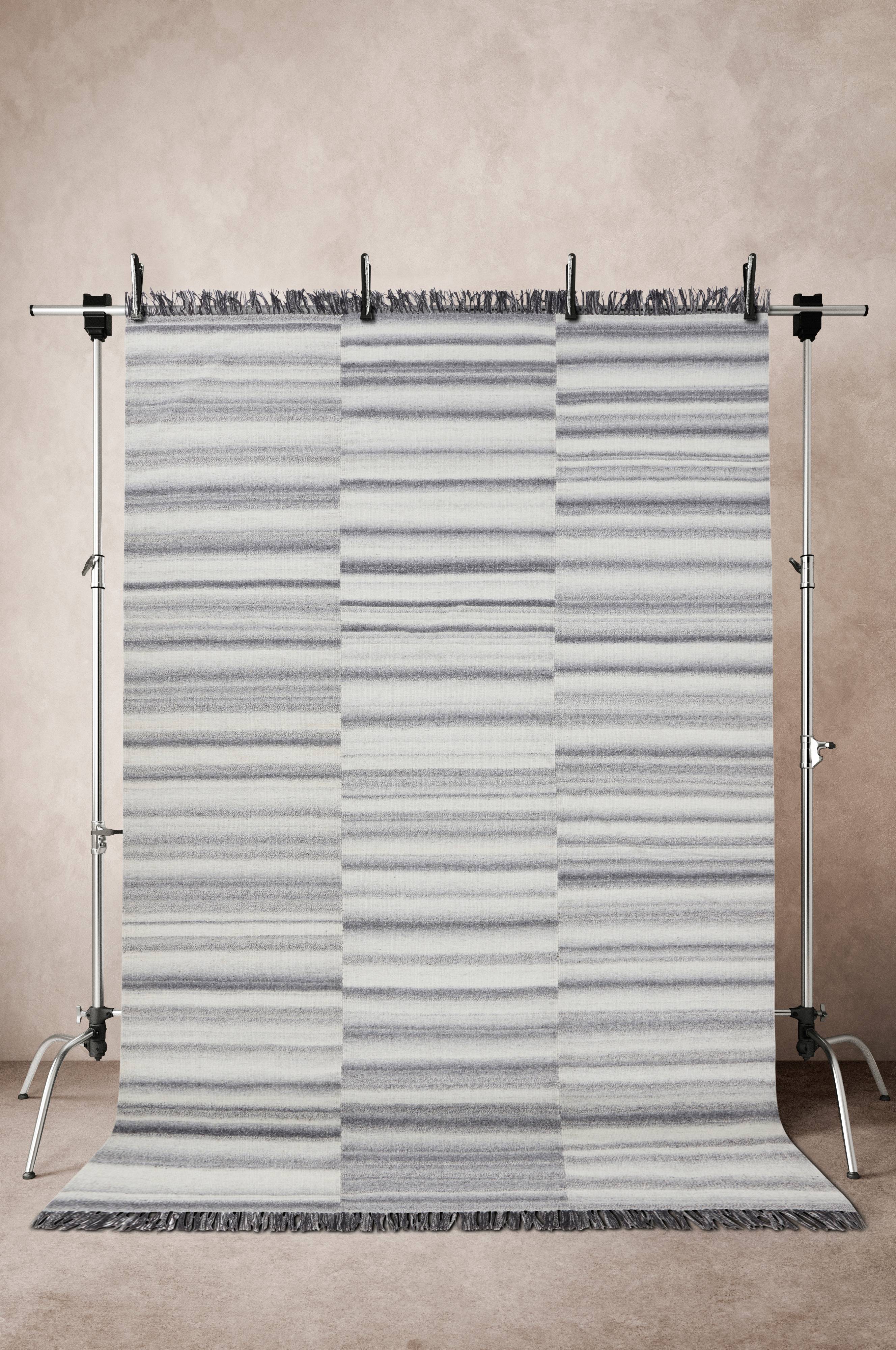 Piękny dywan z wełny, wiskozy i poliestru. Dywan ma dekoracyjne brzegi rozmytymi przejściami i pięknymi odcieniami. Zgrabne, skręcone frędzle wzdłuż krótszych boków. Dywan jest wąski i praktyczny, a jednocześnie ciepła wełna dodaje mu naturalnego i rustykalnego charakteru. Długość frędzli 6,3 cm. Grubość 0,7 cm. 1500 g/m².