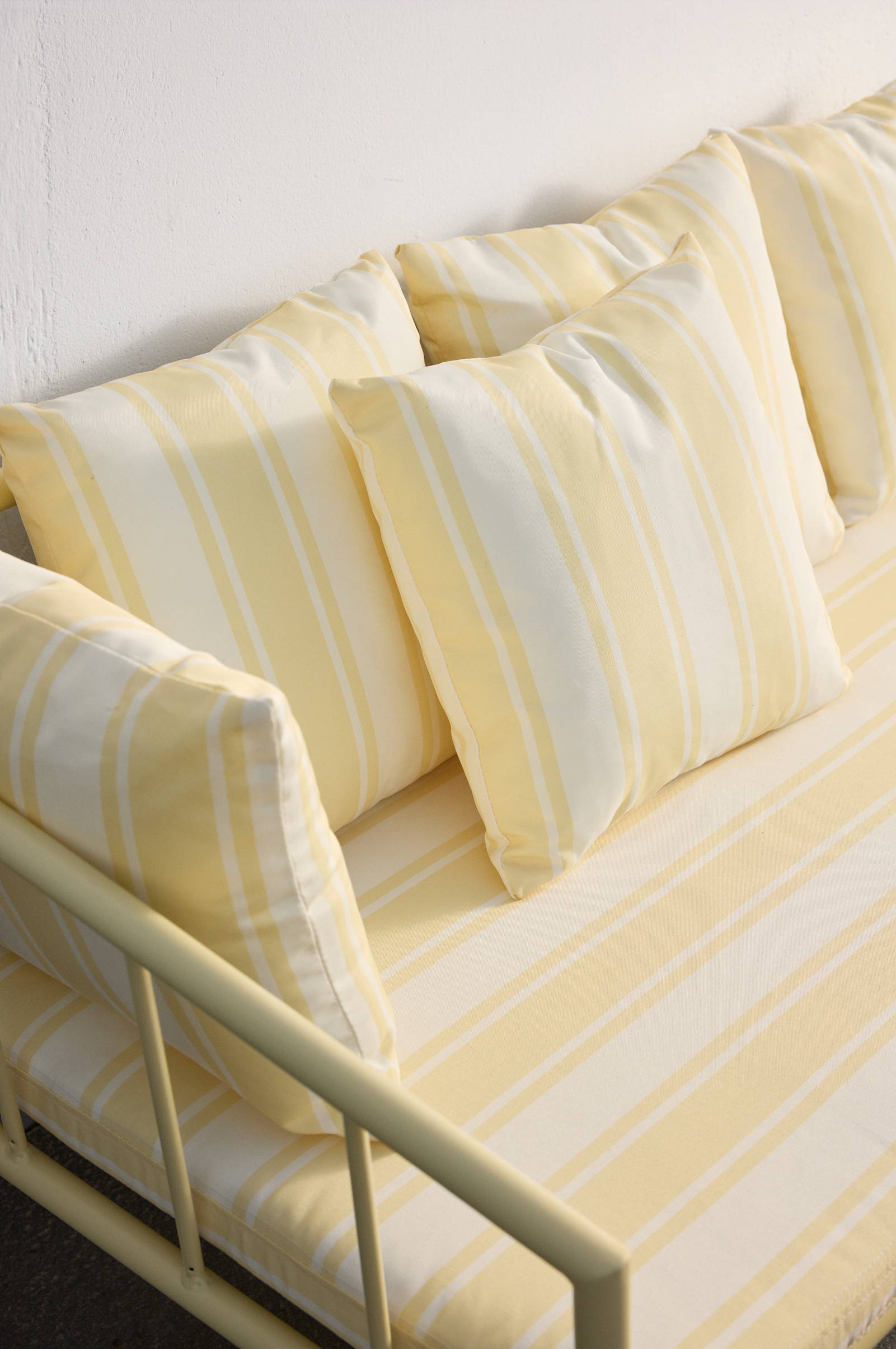Sofa z zestawem poduszek MENTON oferuje komfort i styl dla każdego ustawienia mebli ogrodowych. Elegancka konstrukcja z trzema pluszowymi poduszkami jest idealna do relaksu i spotkań. Wzór dodaje żywego charakteru, tworząc zachęcającą atmosferę. Zaprojektowana, aby uzupełniać różnorodne wnętrza, sofa ta z łatwością i urokiem wzbogaci Twoją przestrzeń. Idealna dla codziennego komfortu i elegancji.