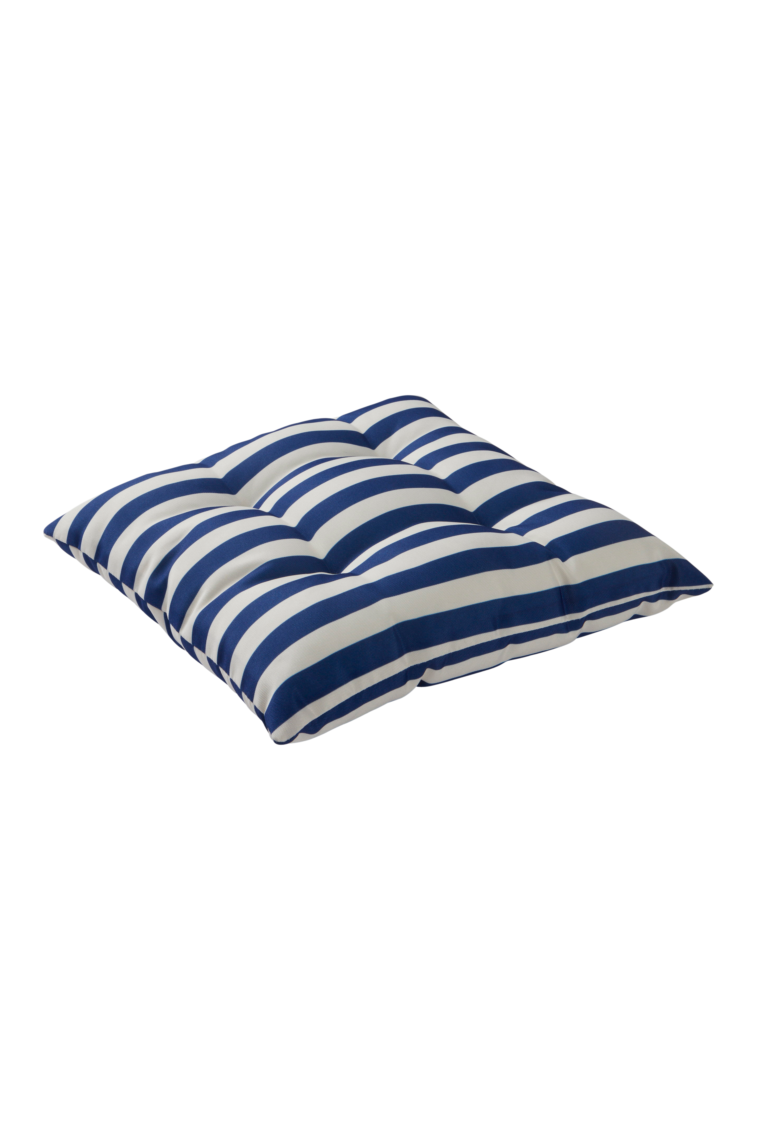 Pasiasta poducha do siedzenia na meble ogrodowe. Poliestrowa tkanina ma nadrukowany wzór i wodoodporną powłokę. Wypełnienie poduchy wykonane jest z pianki. Pokrycie nie jest zdejmowane. Odporność materiału na przecieranie wynosi 30000 cykli Martindale'a.