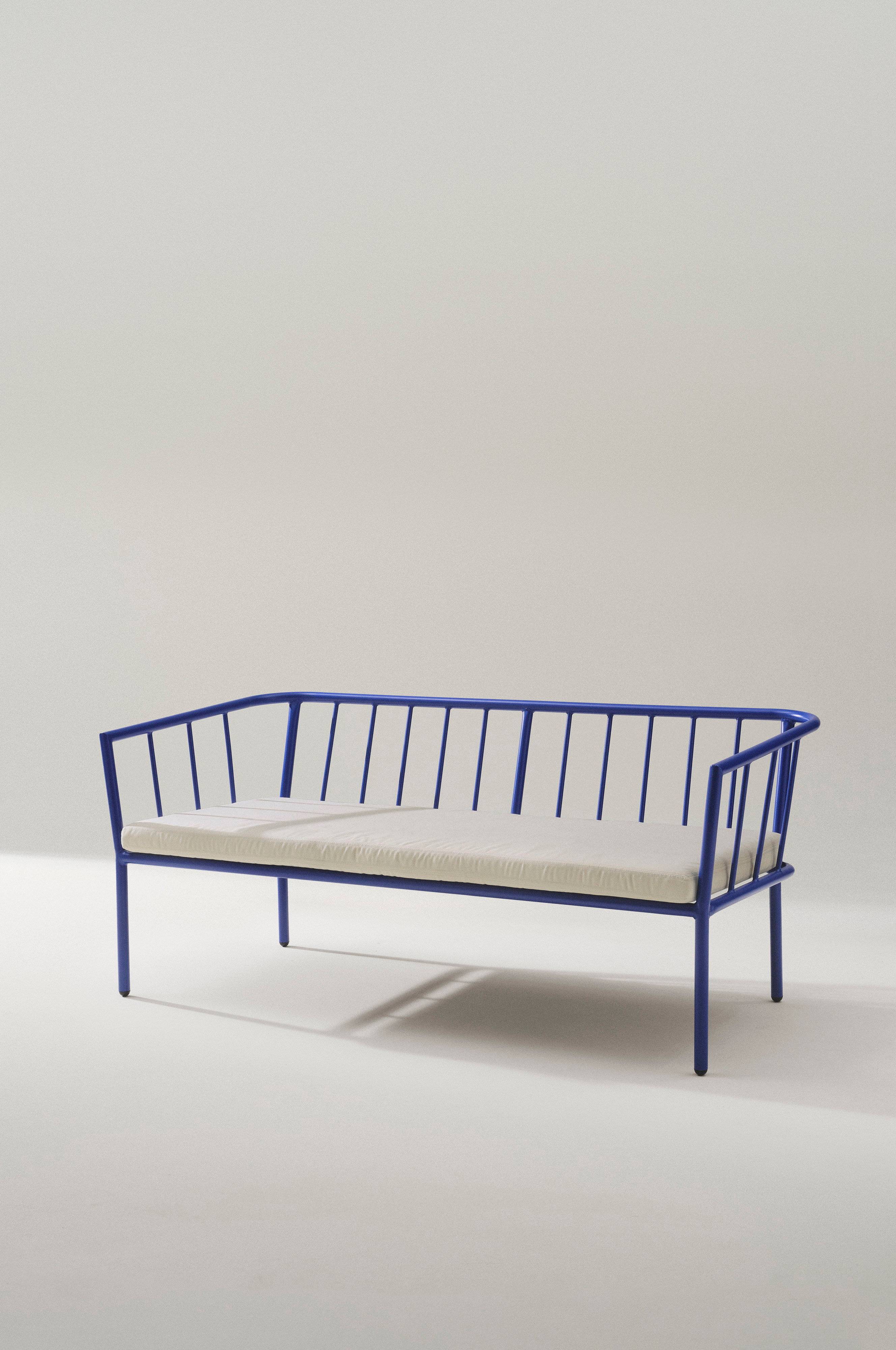 Sofa z malowanego proszkowo aluminium z matowym wykończeniem. Poduszka siedziska z tapicerką poliestrową i pianką. Świetnie sprawdzi się na balkonie lub w ogrodzie, gdy nadejdzie lato. MENTON może stać na zewnątrz i ułatwia życie na świeżym powietrzu. Nie musisz dźwigać, gdy tylko chcesz usiąść na zewnątrz. Sofa jest zgrabna i ma wygodną głębokość siedziska, a niska wysokość siedziska zapewnia przyjemne uczucie w salonie. Poduszka na siedzisko jest dołączona, a sofa będzie wyjątkowo ładna, jeśli uzupełnisz ją pięknymi poduszkami wzdłuż oparcia. Jednolite kolory i wzory oferują możliwość urozmaicenia. Niska waga. Sofę MENTON można łatwo przechowywać w stosie.