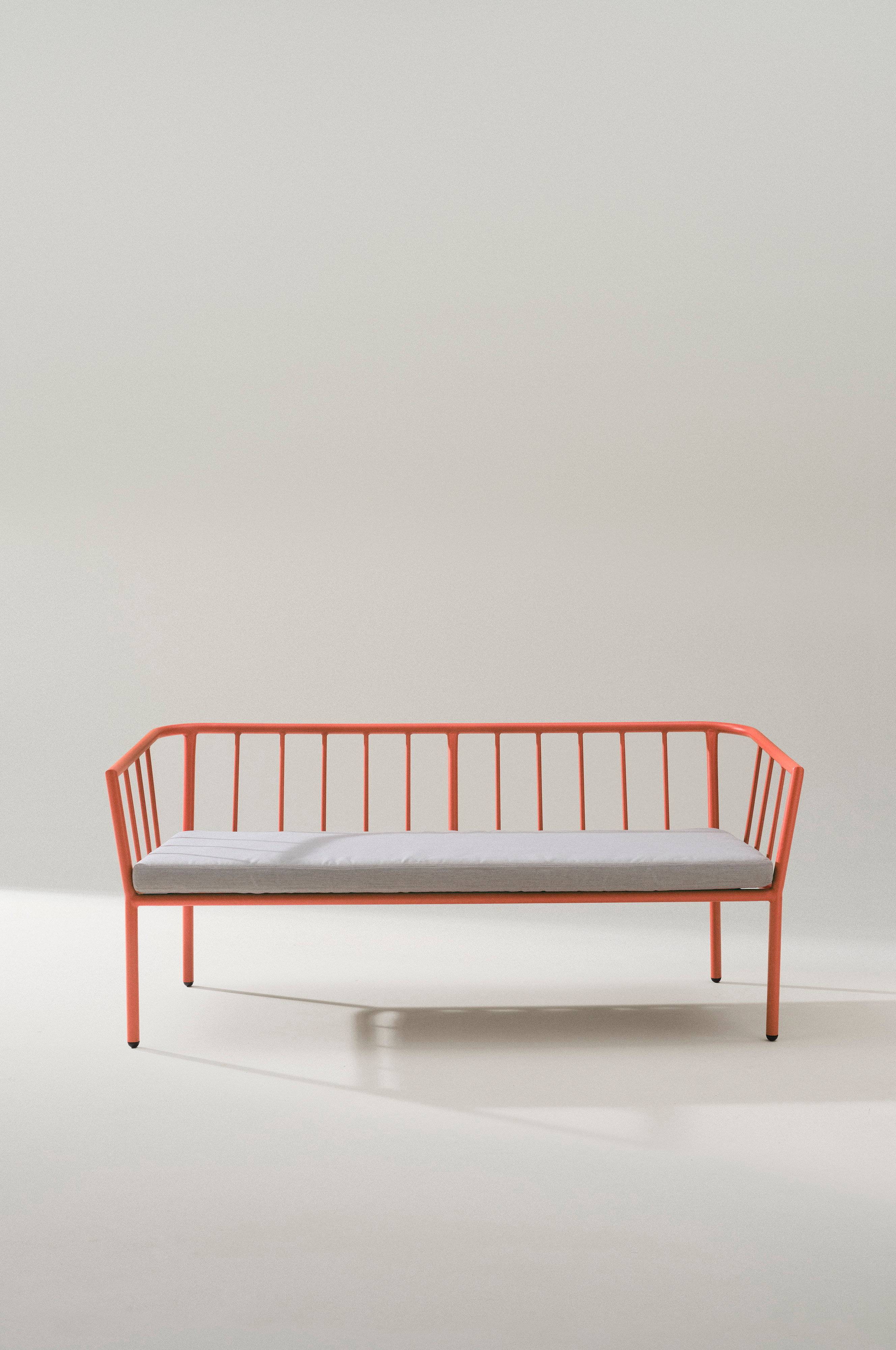 Sofa z malowanego proszkowo aluminium z matowym wykończeniem. Poduszka siedziska z tapicerką poliestrową i pianką. Świetnie sprawdzi się na balkonie lub w ogrodzie, gdy nadejdzie lato. MENTON może stać na zewnątrz i ułatwia życie na świeżym powietrzu. Nie musisz dźwigać, gdy tylko chcesz usiąść na zewnątrz. Sofa jest zgrabna i ma wygodną głębokość siedziska, a niska wysokość siedziska zapewnia przyjemne uczucie w salonie. Poduszka na siedzisko jest dołączona, a sofa będzie wyjątkowo ładna, jeśli uzupełnisz ją pięknymi poduszkami wzdłuż oparcia. Jednolite kolory i wzory oferują możliwość urozmaicenia. Niska waga. Sofę MENTON można łatwo przechowywać w stosie.