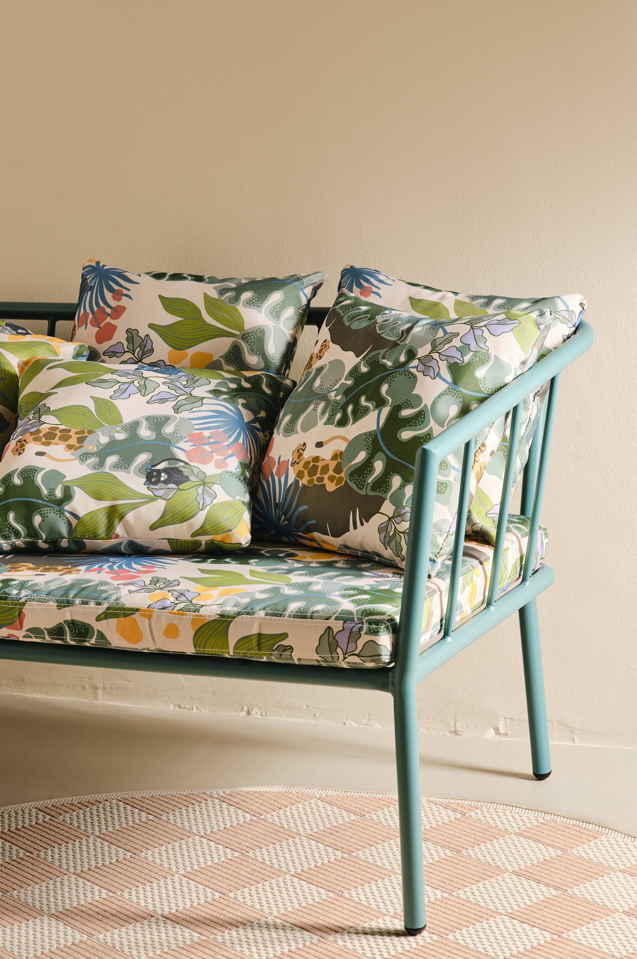 Wprowadź odrobinę retro uroku do swojego ogrodu dzięki zestawowi poduszek MENTON. Zaprojektowane przez utalentowaną Marię Carlberg, te poduszki mają nostalgiczny nadruk, który przekształci każdą sofę zewnętrzną w wyrazisty element. Wykonane z wodoodpornego poliestru, są idealne do użytku w każdych warunkach pogodowych. Wygodna zdejmowana poszewka z zamkiem błyskawicznym zapewnia łatwą pielęgnację, łącząc funkcjonalność z kultowym designem Marii. Odmień swoją przestrzeń zewnętrzną już dziś.