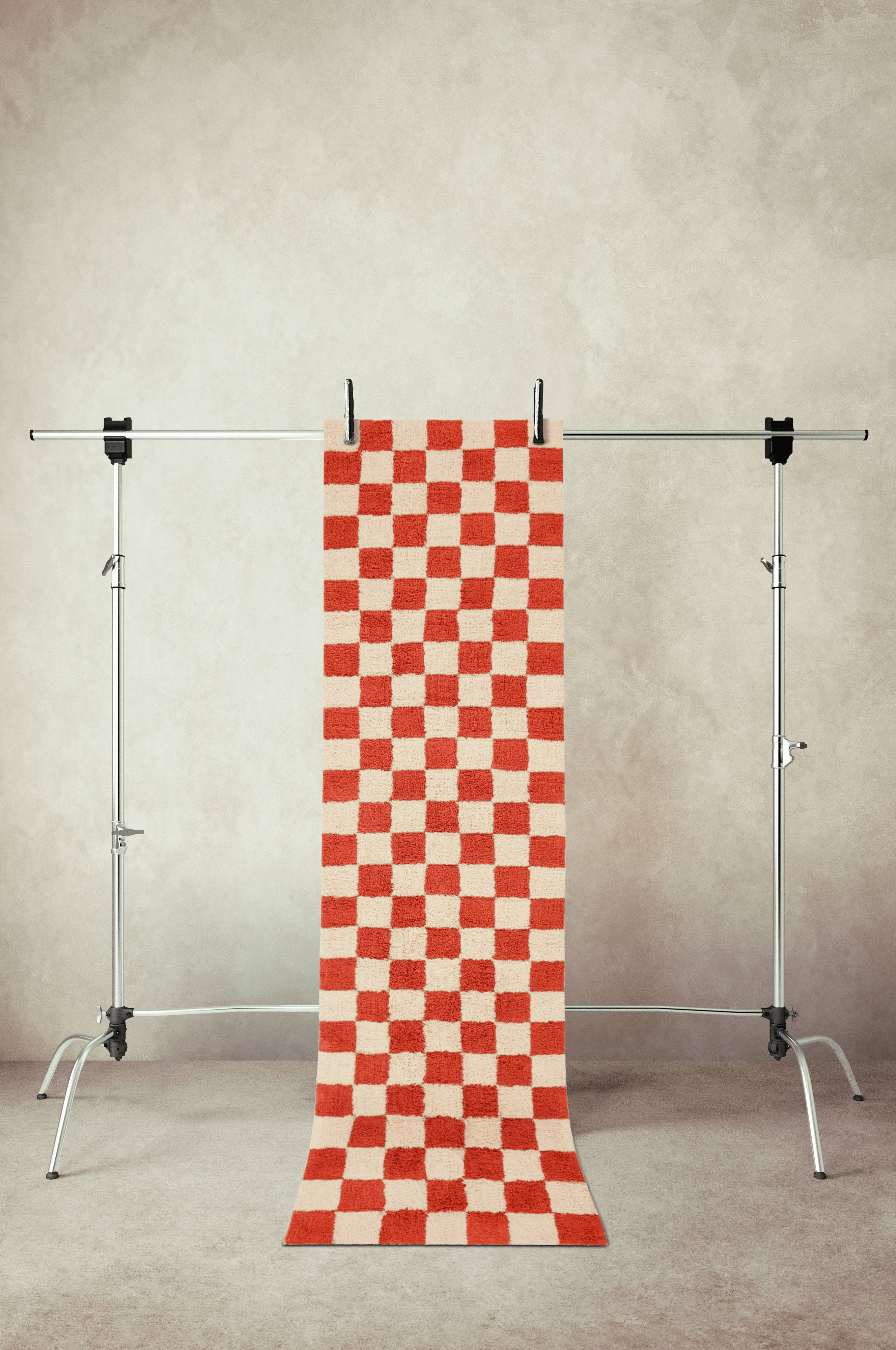 Dywan wykonany z ekologicznej przędzy bawełnianej. Piękny dywan ma miękkie włosie, jest ozdobiony wzorem kraty z barwionej przędzy i ma tkany brzeg w naturalnym kolorze. Długość włosia ok. 1-1,5 cm. Grubość 2 cm. 1300 g/m².