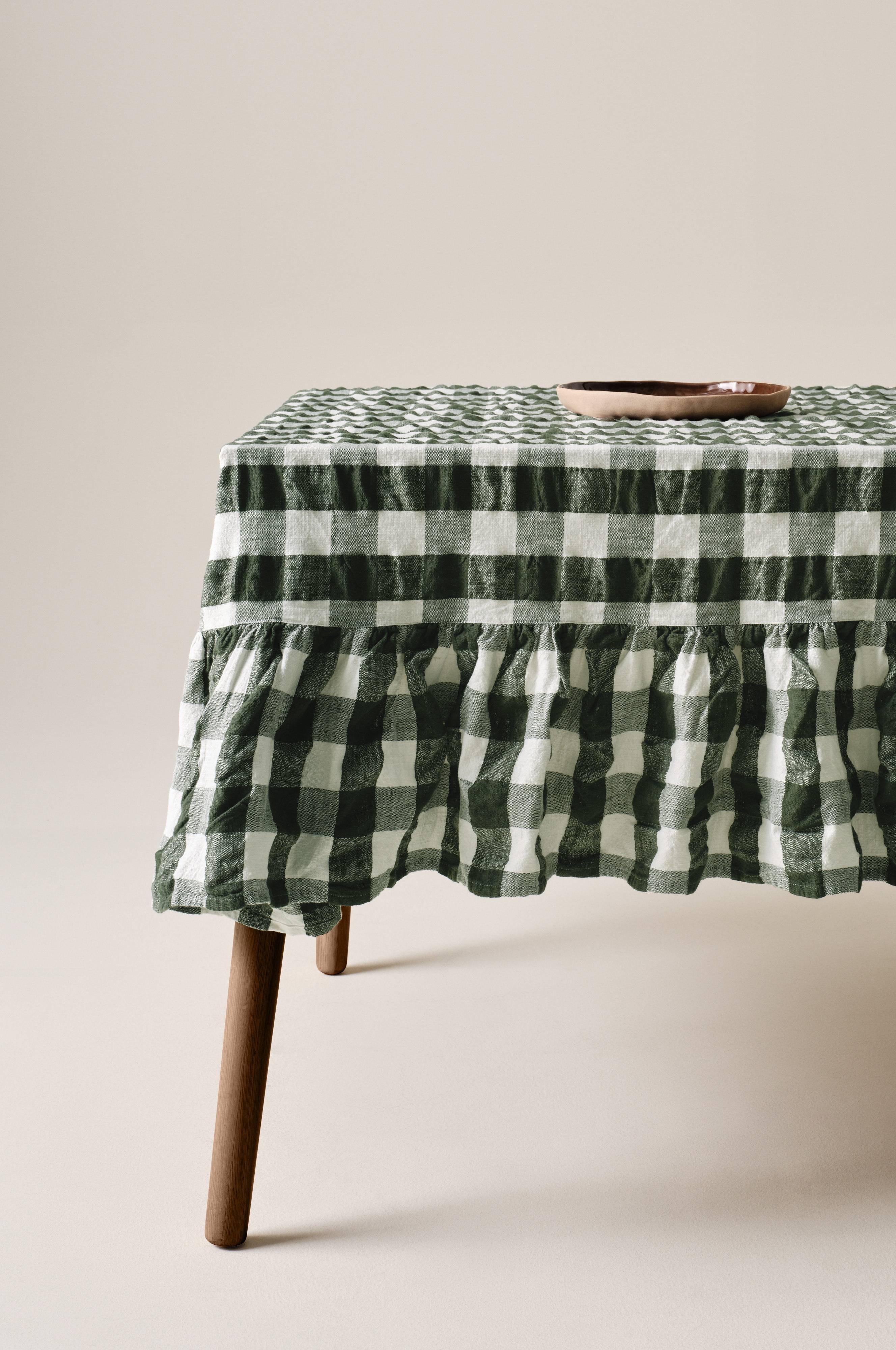 Obrus MIMMI ma barwiony przędzą wzór w kratkę i jest wykonany z tkaniny seersucker. Bawełniany obrus ma falistą krawędź dookoła. Klasyczny wzór w kratę doda uroku Twojej kuchni. Obrus jest idealny na każdą okazję, tworząc przyjemną atmosferę dla rodziny i gości.