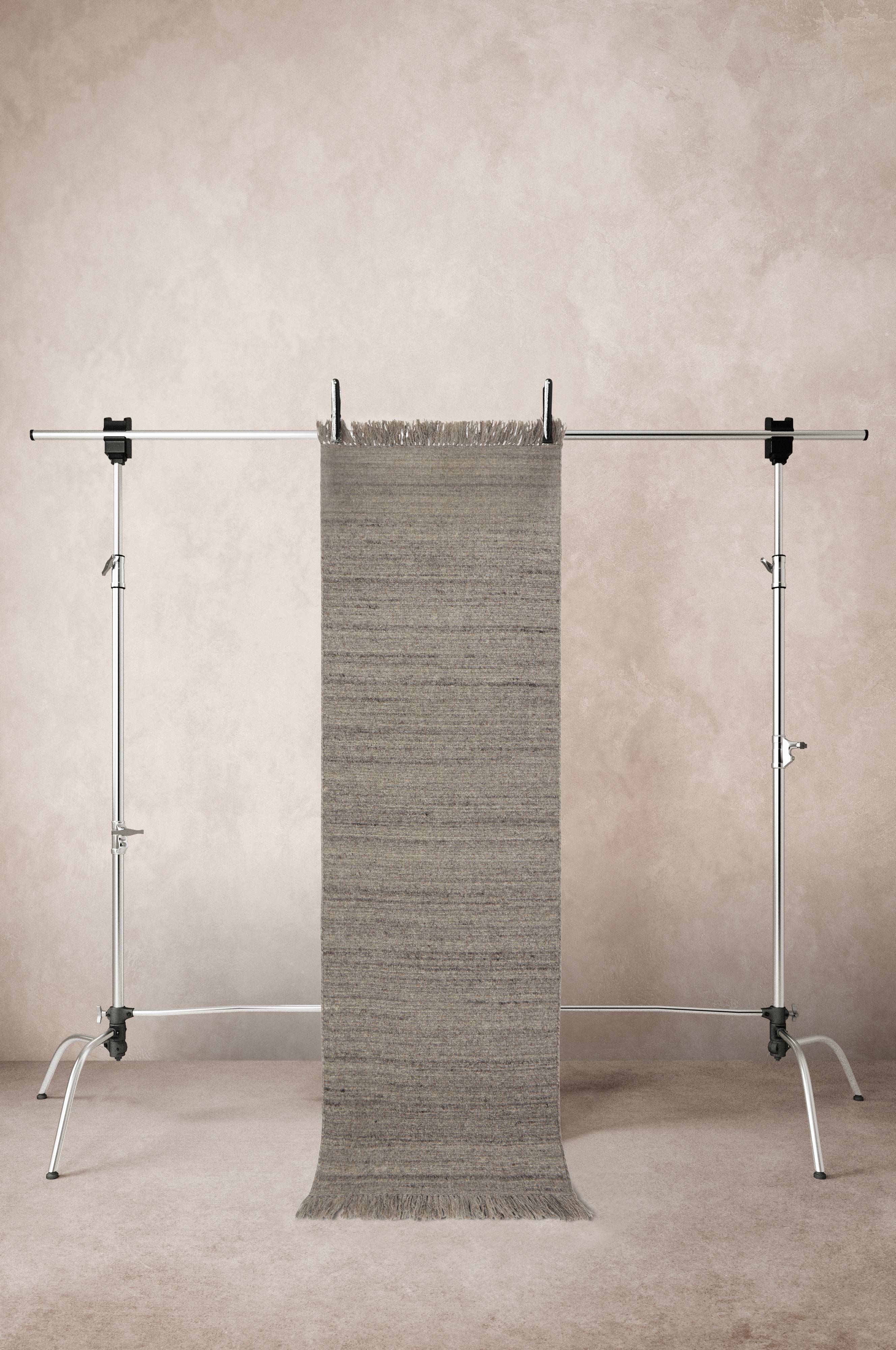 Ręcznie tkany na płasko dywan wełniany wykonany z przędzy we wzór melanż, ozdobiony na krótszych bokach wiązanymi frędzlami. Dywan MONIER, dzięki wykorzystaniu wełny, jest naturalnie ciepły. Długość frędzli 7 cm. Grubość 0,7 cm. 1800 g/m².