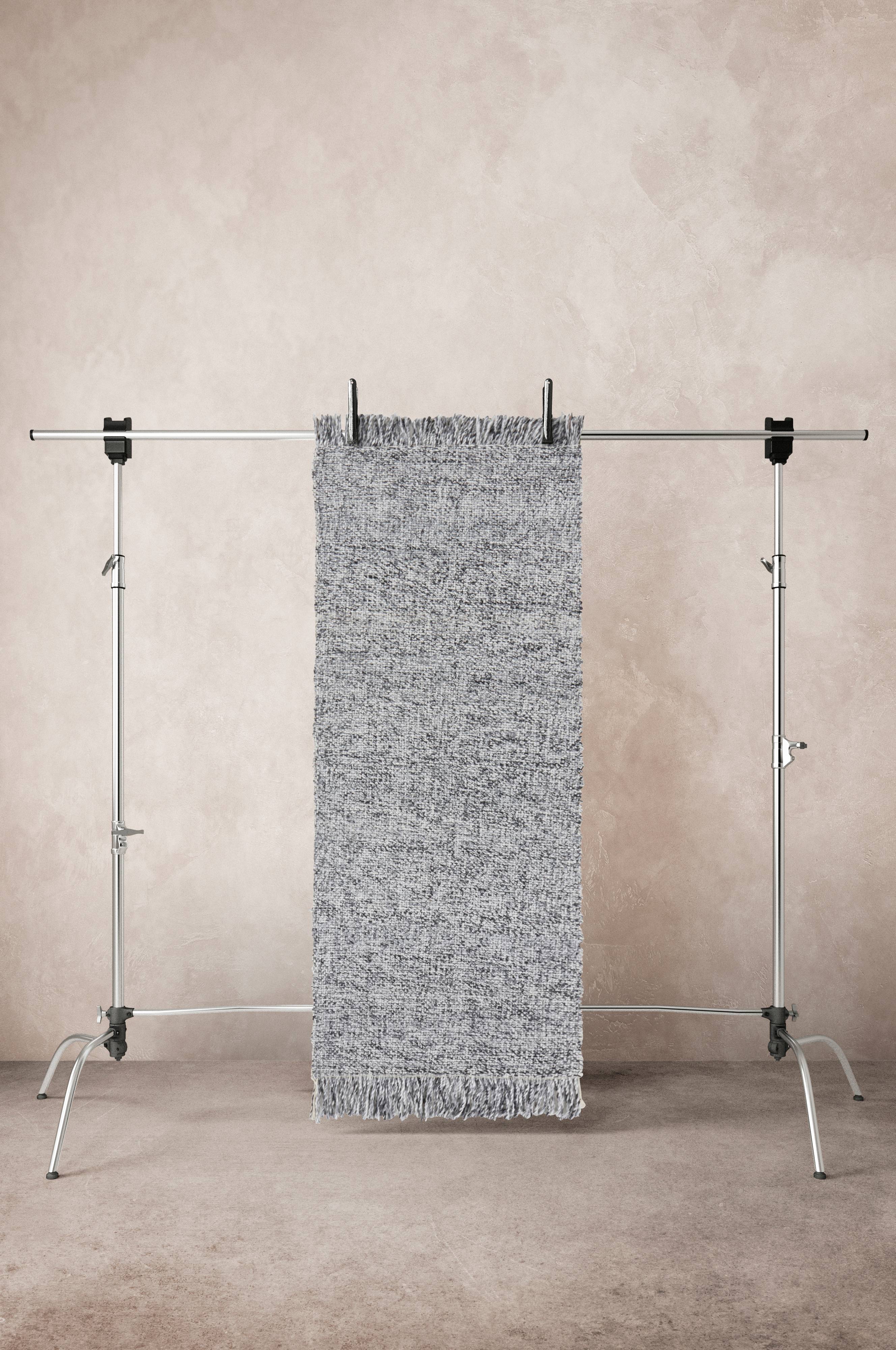Dywan tkany na płasko, wykonany z pochodzącego z recyklingu poliestru. Sposób tkania dywanu zapewnia piękną strukturę i efekt melanżu. Po dywanie przyjemnie się chodzi, ma wszystkie cechy, jakie powinien mieć dywan wewnętrzny, ale można go też używać na zewnątrz. Jest odporny na wilgoć i pleśń, co jest fantastyczną zaletą każdego materiału. Długość frędzli 5 cm. Grubość 0,7 cm. 2300 g/m².