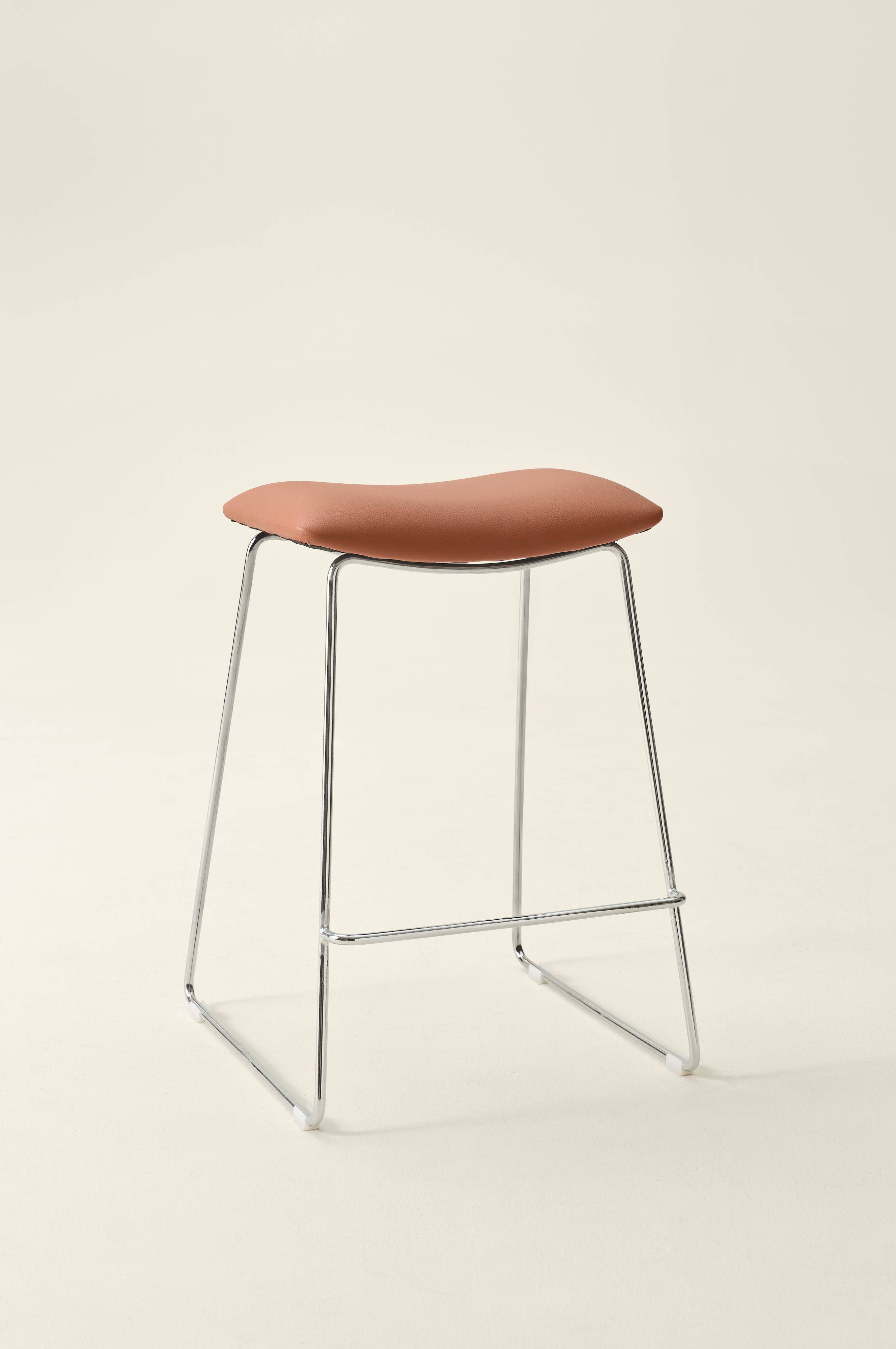 Stołek barowy MOSS jest wykonany z metalu z ładnym chromowanym wykończeniem, posiada trwałe pokrycie imitujące skórę. Wypełnienie jest miękkie, dzięki czemu siedzisz wygodnie. Wygodny podnóżek stołka barowego dodaje komfortu. Podnieś swoją kuchnię w modnym stylu.