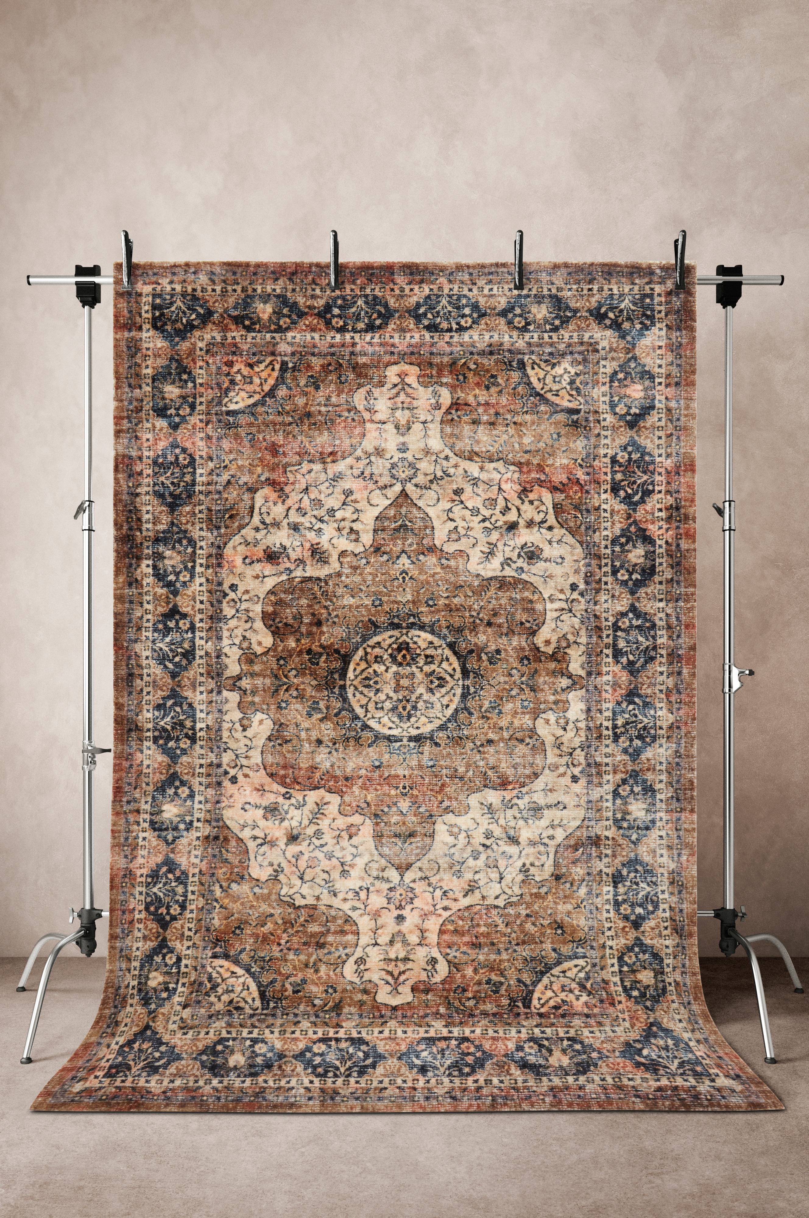 Miękki, gęsto tkany dywan z włosia wykonany z pochodzącego z recyklingu poliamidu, z cyfrowo nadrukowanym wzorem medalionu o cudownym charakterze vintage i spokojnej, ciepłej palecie barw. Dywan ma piękny połysk, a cyfrowy nadruk jest bardziej miękki, wyraźniejszy oraz zapewnia lepsze odwzorowanie kolorów. Długość włosia 0,9-1 cm. Grubość 1,1-1,2 cm. 2400-2600 g/m².