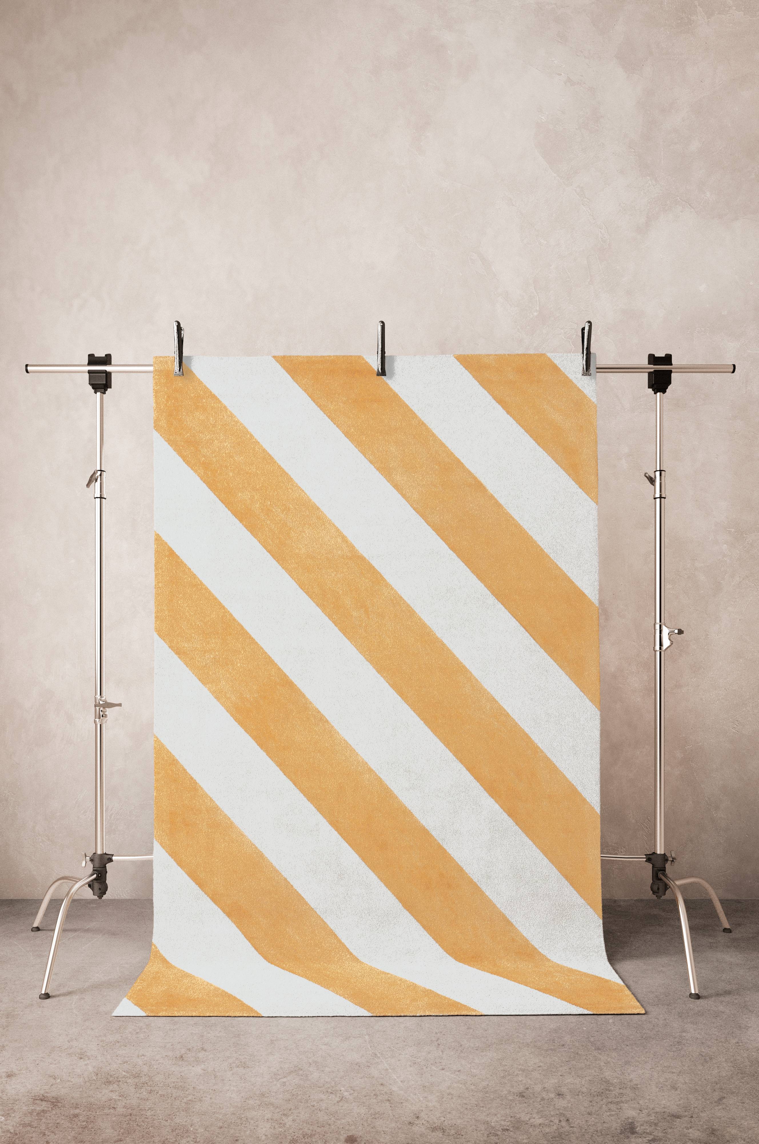 NALE to ręcznie tkany dywan z wiskozy w efektowne, grube, ukośne pasy, cudownie miękki i błyszczący. Piękne rękodzieło sprawia, że każdy dywan jest wyjątkowy. Długość włosia 0,5-0,6 cm. Grubość 1-1,1 cm. 2000 g/m².