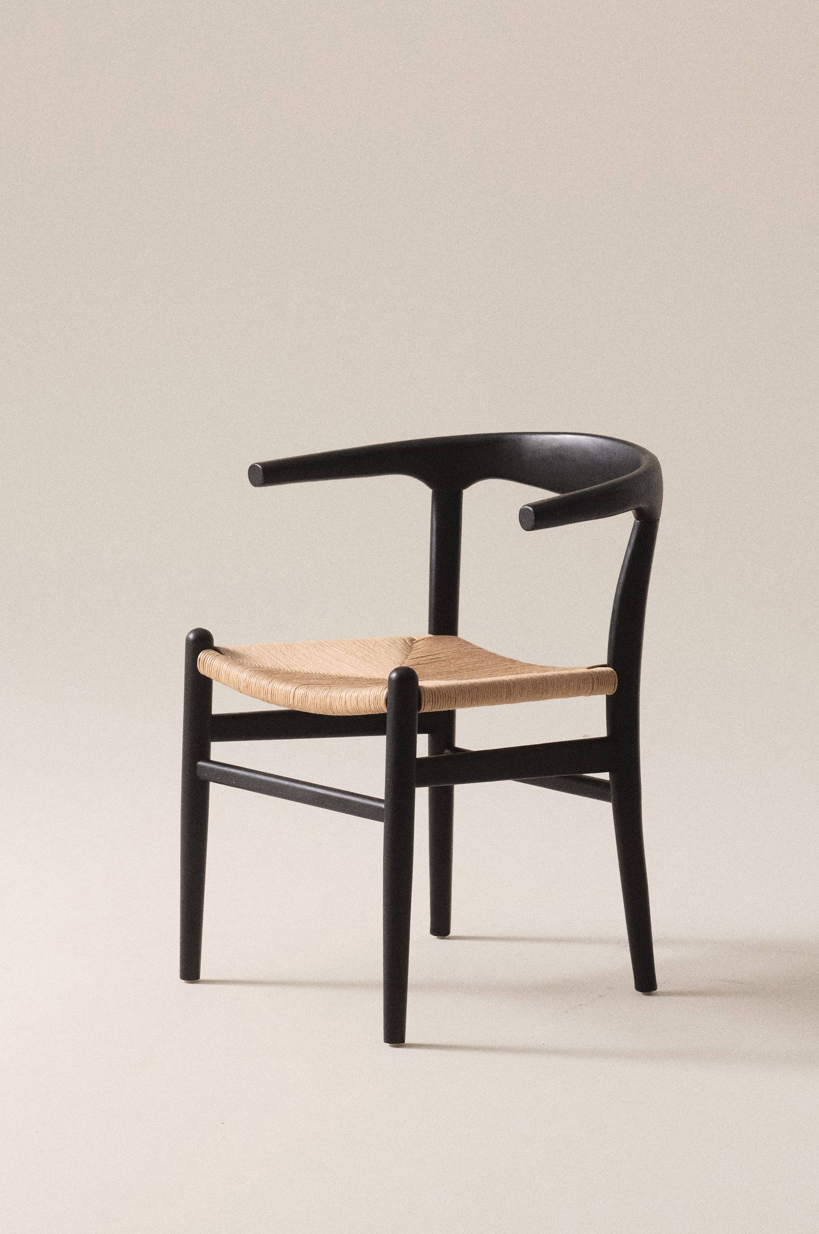 Stołek z litego wiązu. Warianty w kolorze drewna, czarnym/naturalnym oraz w kolorze orzecha/naturalnym są dodatkowo lakierowane. Bielony wiąz, zarówno z jasnym jak i z ciemnym siedziskiem, mają powierzchnię bieloną, ale nie lakierowaną. Siedzisko wykonane ze sznurka papierowego. Solidne drewno wiązowe w połączeniu z papierowym sznurkiem tworzy ciekawy kontrast oraz zapewnia wygodę siedzenia.