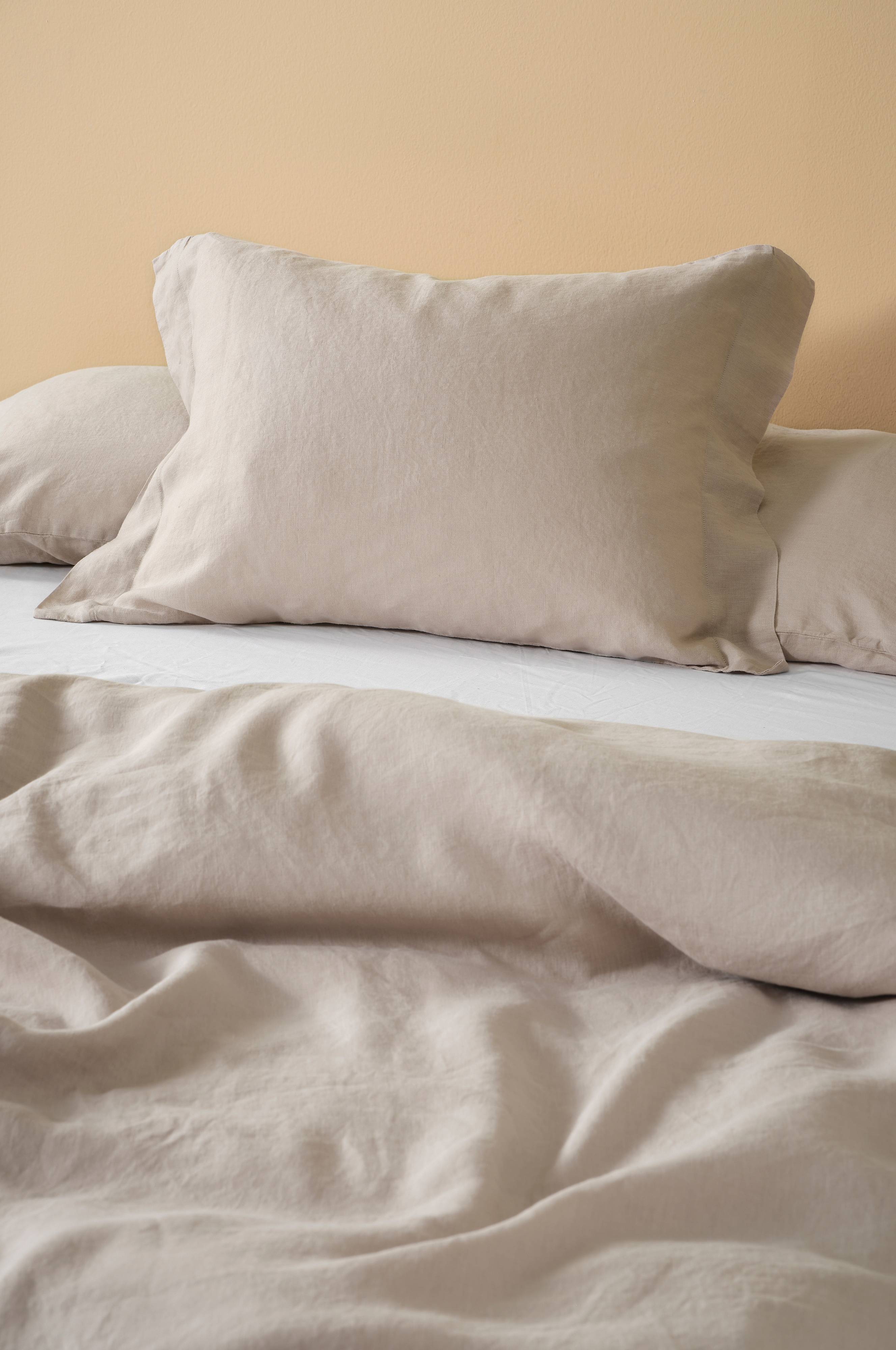 Poszewka z luksusowego lnu. Seria NATTKVIST została uszyta z pięknej tkaniny lnianej, którą następnie wyprano, aby nadać jej cudownej miękkości, dzięki czemu spanie w niej to czysta przyjemność. Przy krótszych bokach poszewki biegnie lamówka o szerokości 7 cm. Gęstość splotu materiału wynosi 94 TC. (Gęstość splotu materiału oznacza ilość przeplecionych ze sobą nici, thread count, na cal kwadratowy materiału. Im wyższa gęstość tym lepsza jakość. Wyjątkiem są tkaniny z lnu, które często mają rzadki splot, co przekłada się na wygodę używania.)
