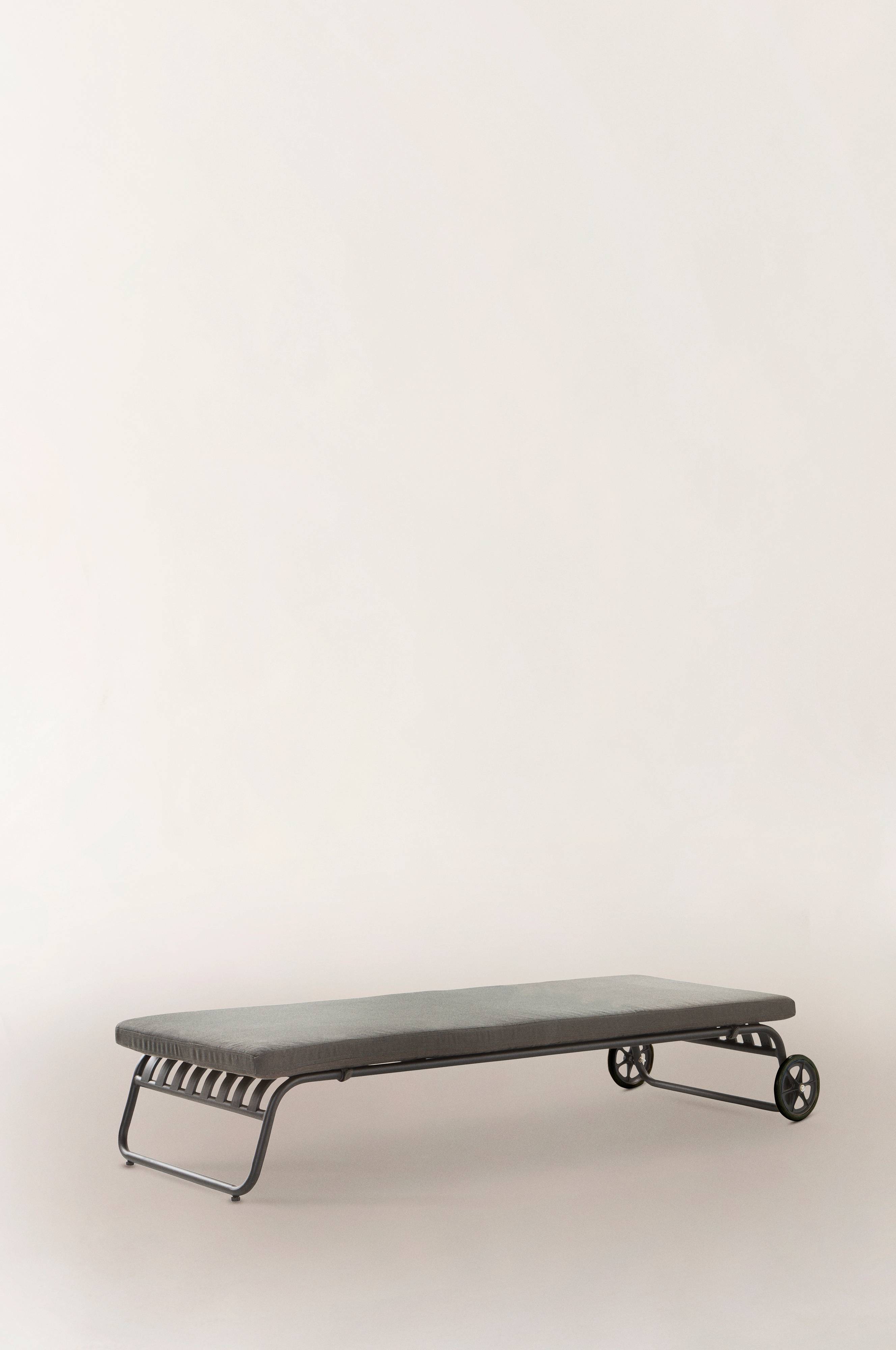 Leżak do opalania z matową powierzchnią i dołączonym materacem z pokryciem z poliestru i wypełnieniem z pianki poliuretanowej. Seria NERJA ma miękkie linie, przy czym nadal zachowuje swój odważny charakter. Aluminiowy profil jest nieco mocniejszy, jednak aluminium jest lekkim materiałem, co zapewnia meblom z serii NERJA niewielką wagę. Leżak ma stylowy kształt, zaś metalowe kółka od strony wezgłowia sprawiają, że leżak jest łatwy do przestawienia. Materac utrzymuje się na miejscu dzięki tasiemkom z rzepami, dzięki którym mocowany jest do metalowej ramy. Pokrycie jest zdejmowane i posiada zamek błyskawicznym w tylnej krawędzi. NERJA może stać na zewnątrz, ponieważ aluminium nie rdzewieje i jest łatwe do wytarcia.