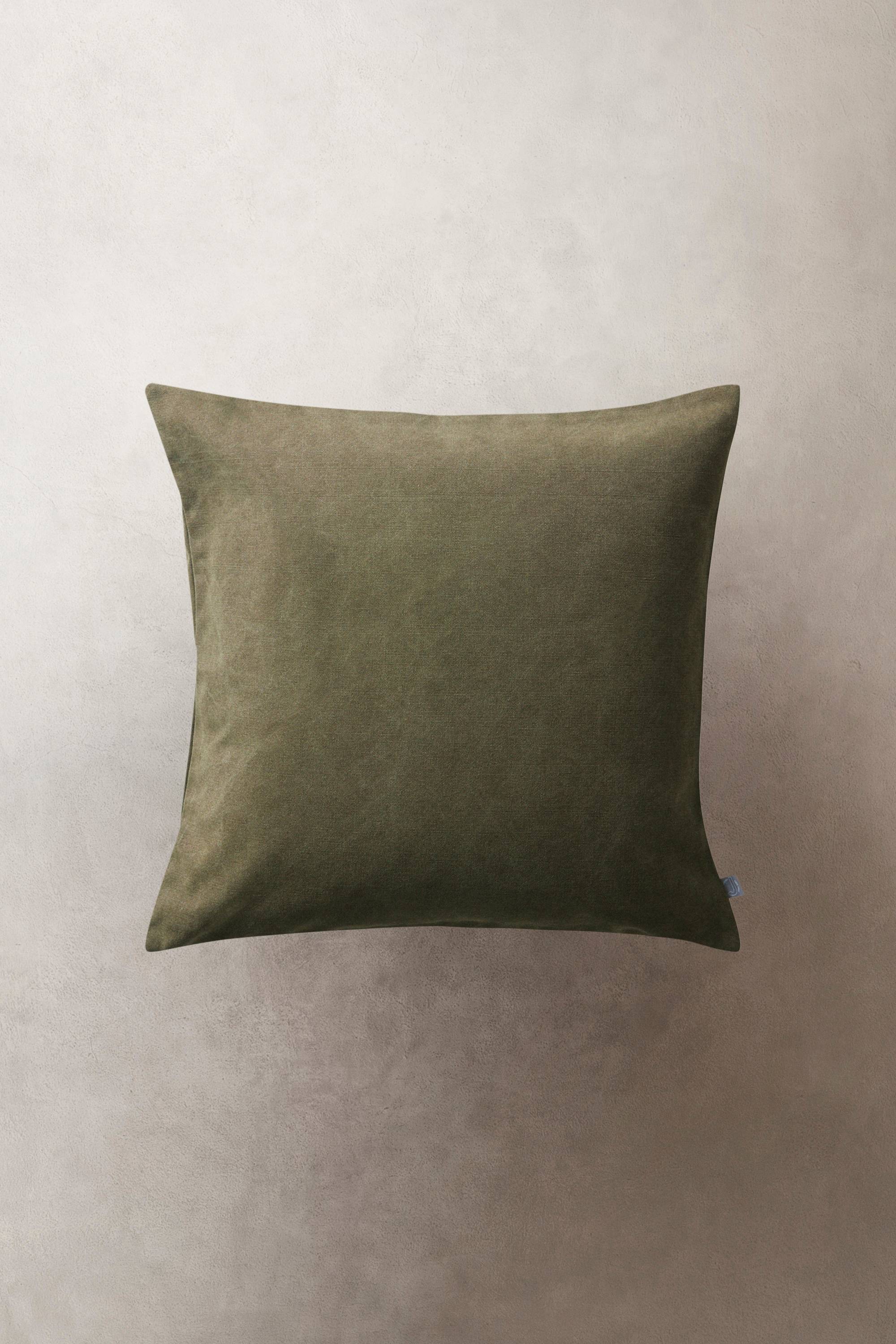 Jednokolorowa poszewka dekoracyjna z miękkiej mieszanki bawełnianej z bawełną z recyklingu. Zamek błyskawiczny w spodniej krawędzi.