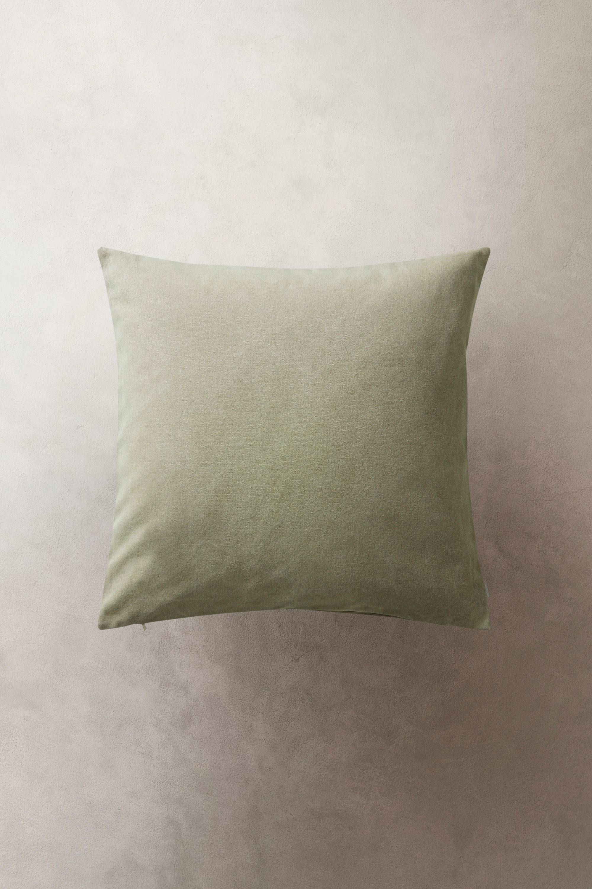Jednokolorowa poszewka dekoracyjna z miękkiej mieszanki bawełnianej z bawełną z recyklingu. Zamek błyskawiczny w spodniej krawędzi.