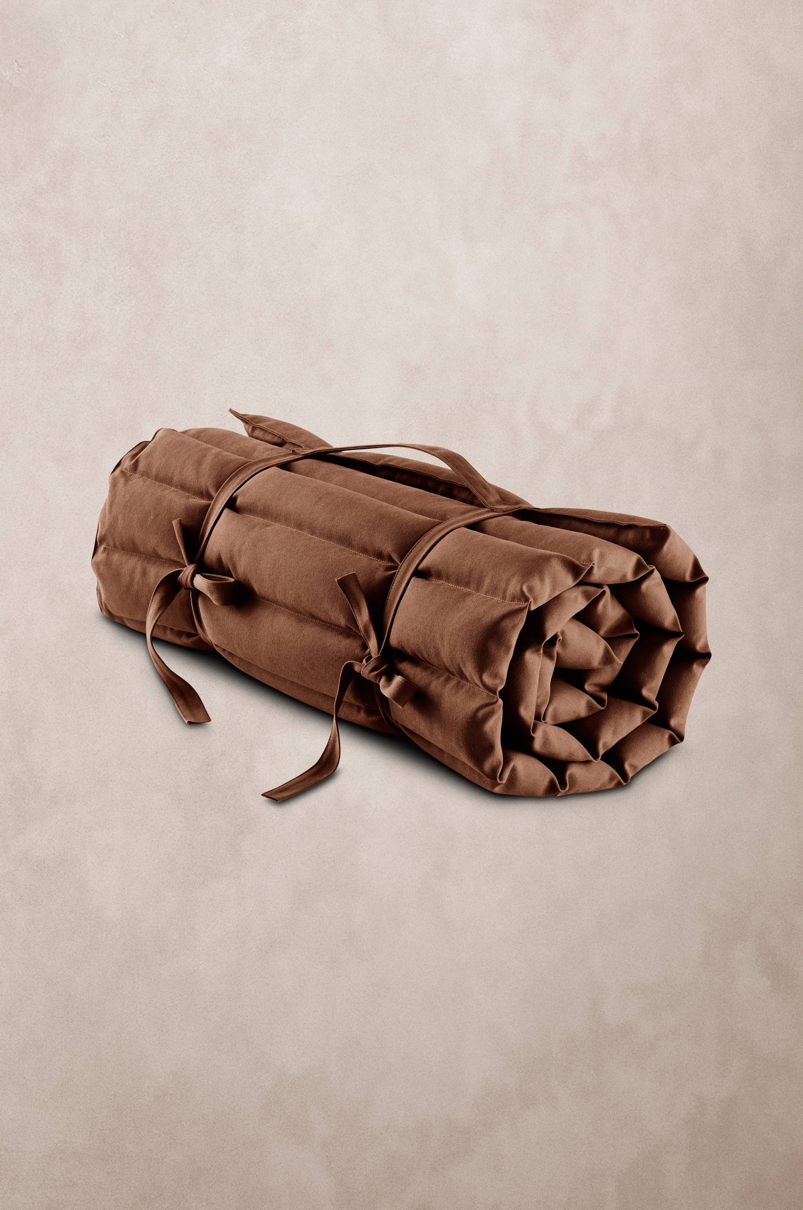 Materac plażowy z pokryciem ze spranego płótna, wykonanego z bawełny i poliestru pochodzących z recyklingu. Wypełnienie zostało wykonane z poliestru. Materac jest pikowany poziomo, więc wypełnienie pozostaje na miejscu, a całość jest łatwiejsza do zwinięcia. Troczki i uchwyt do przenoszenia sprawiają, że materac zawsze łatwo zabrać ze sobą.