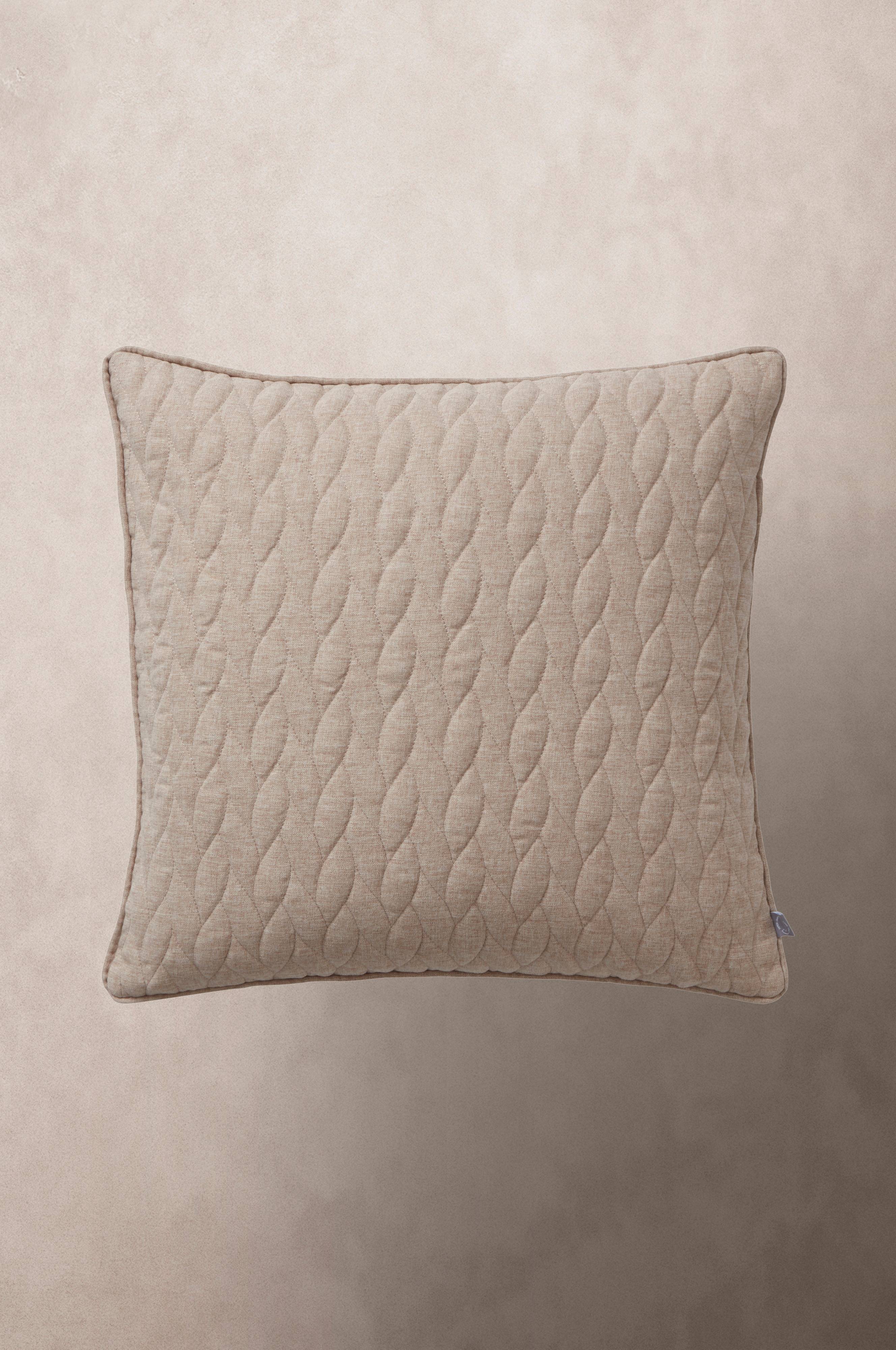 Dekoracyjna poszewka z poliestru przyjemnie imitującego len, z nieregularnym pikowanym wzorem na przedniej stronie. Tworzące dekoracyjny wzór szwy dodatkowo utrzymują watowanie na miejscu. Szew biegnący wokół krawędzi zapewnia urocze obramowanie. Tylna strona jest gładka. Zamek błyskawiczny w spodniej krawędzi.