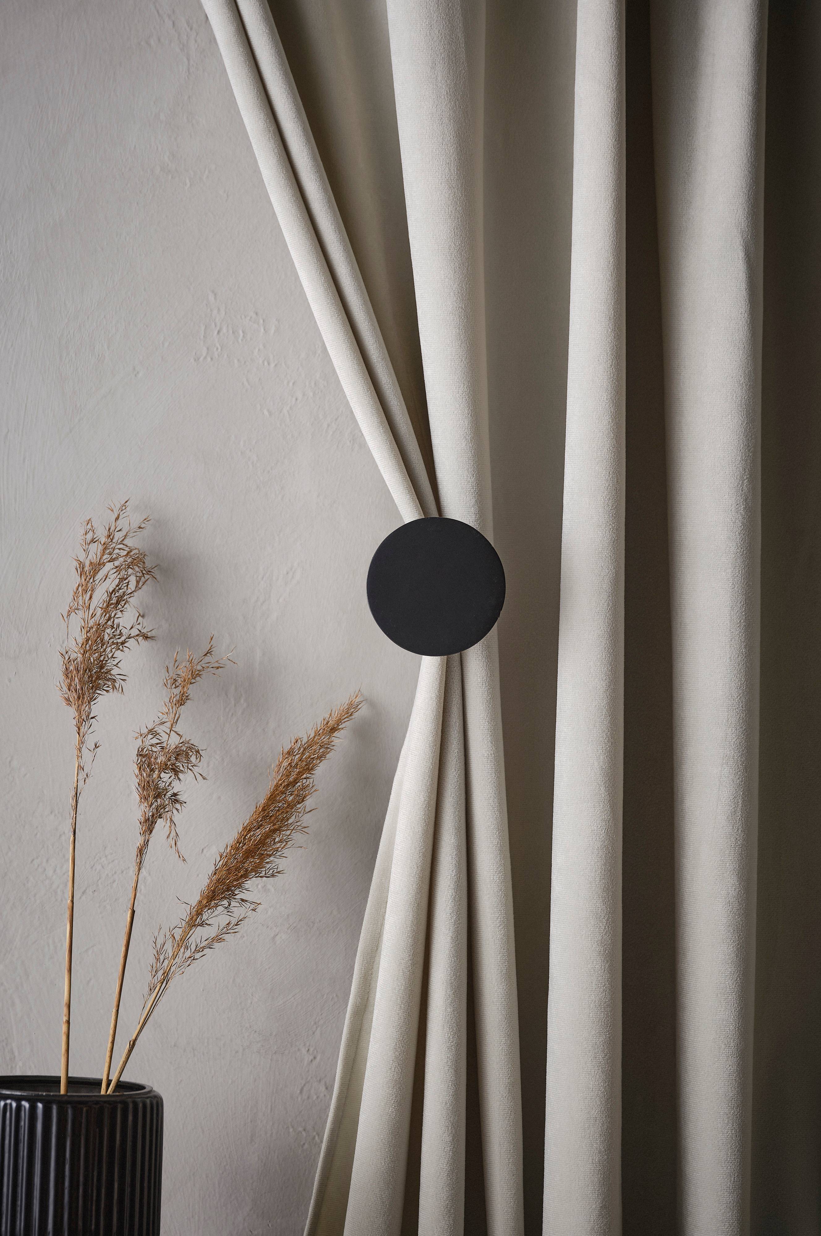 2 upinacze z metalu. Dyskretny upinacz do przytrzymania zasłon, zza którego łatwo wysunąć zasłonę gdy tylko zapragniesz nieco prywatności. NOLIE gwarantuje stylowe upięcie. Śruby i kołek w zestawie.