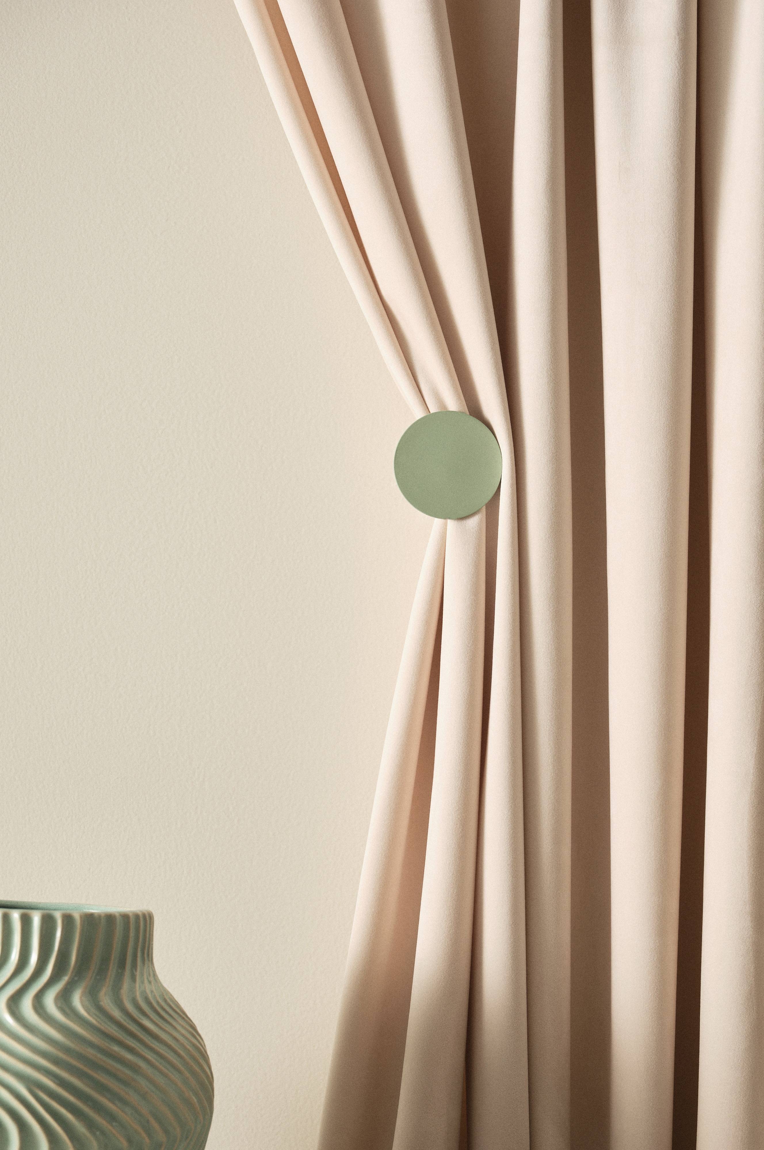 2 upinacze z metalu. Dyskretny upinacz do przytrzymania zasłon, zza którego łatwo wysunąć zasłonę gdy tylko zapragniesz nieco prywatności. NOLIE gwarantuje stylowe upięcie. Śruby i kołek w zestawie.