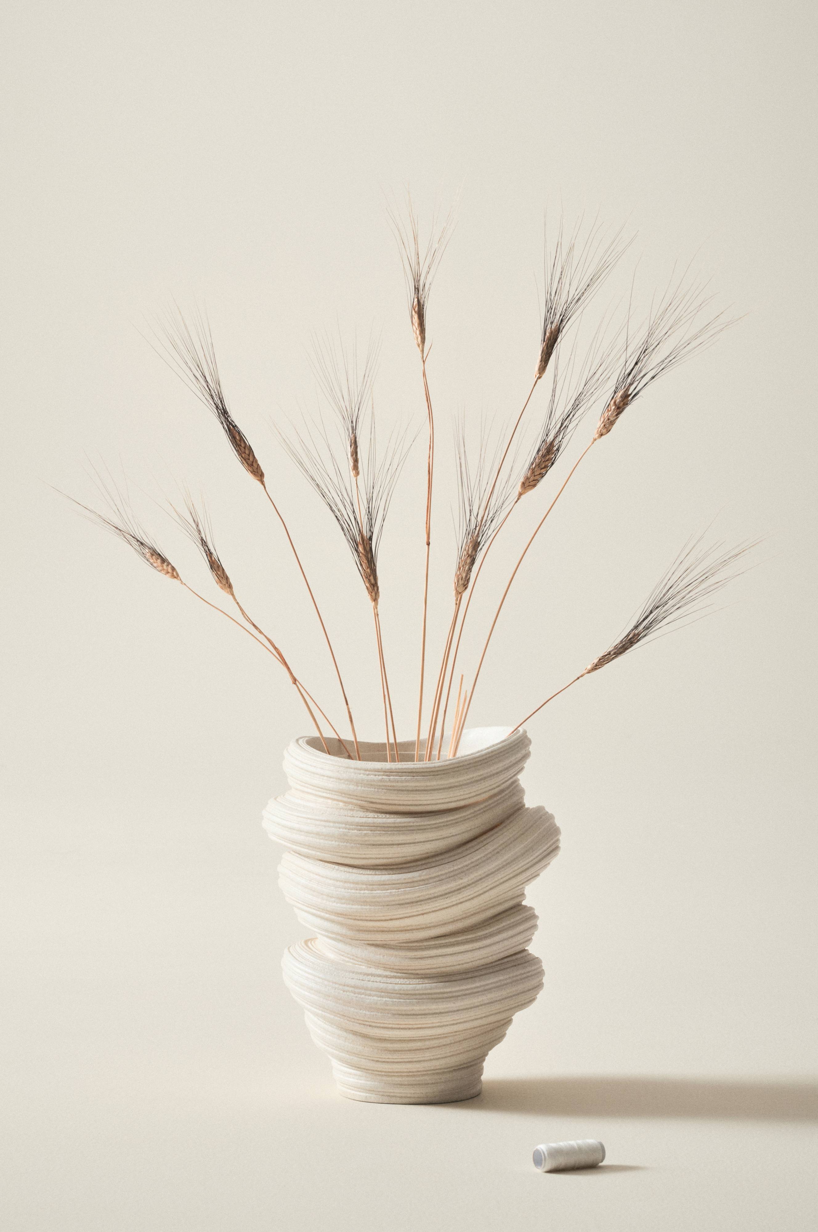 Dekoracyjny wazon z żywicy epoksydowej o zabawnym, skręconym kształcie, który równie pięknie prezentuje się pusty, jak i wypełniony kłosami i gałązkami. Kolor wazonu jest dyskretny, a jego kształt przyciągnie każde spojrzenie. Wymiary wazonu nadają mu zadziornego charakteru.