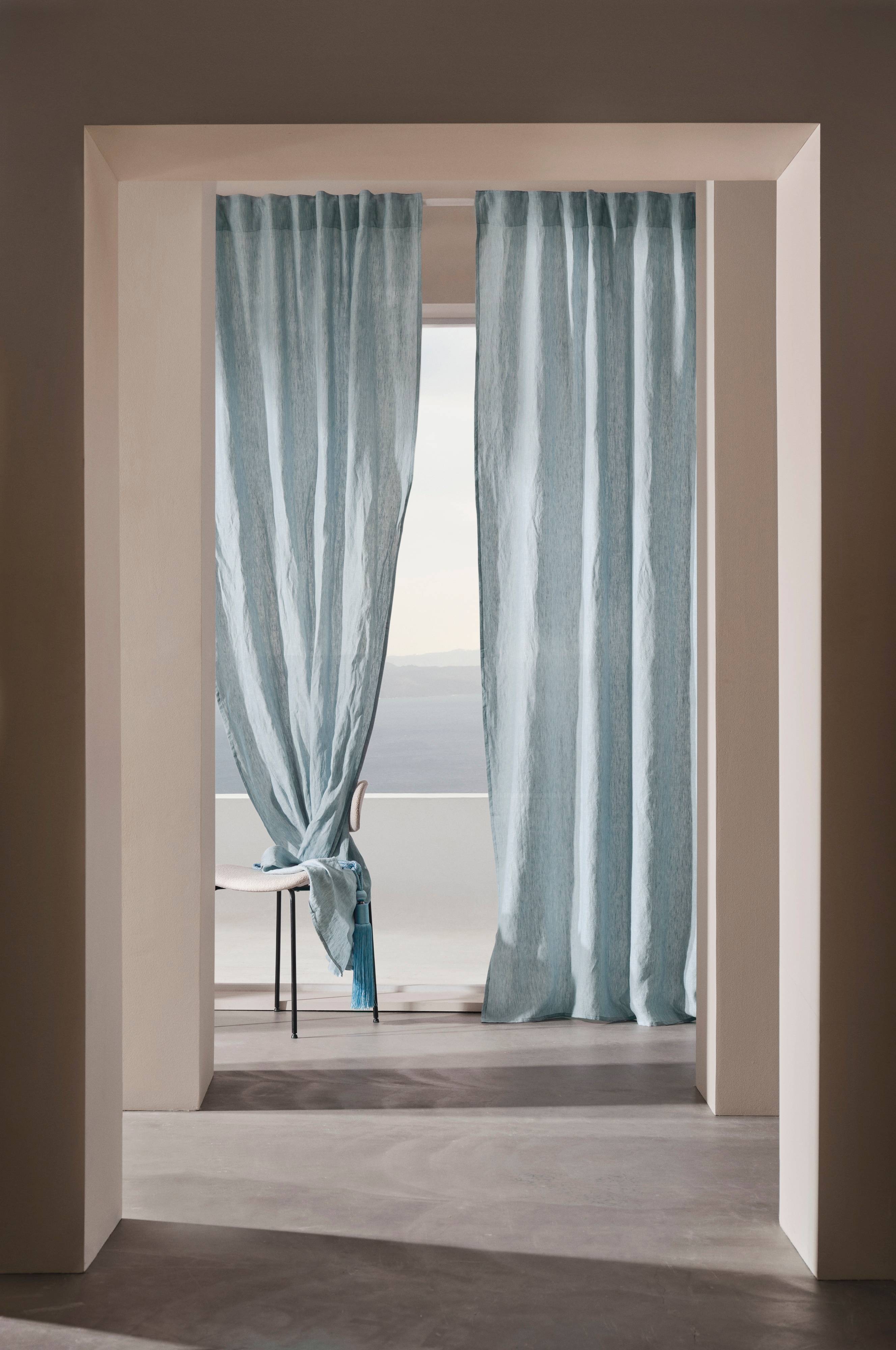 Dwie zasłony z 100% lnu z wszytą taśmą wielofunkcyjną. Zasłony można zawiesić na haczykach lub przy użyciu tunelu czy krytych szelek. Len ze względu na swoją specyficzną strukturę to tkanina charakteryzująca się rustykalnym i naturalnym wyglądem, jest piękna, a jasne odcienie pogłębiają jej prostotę.