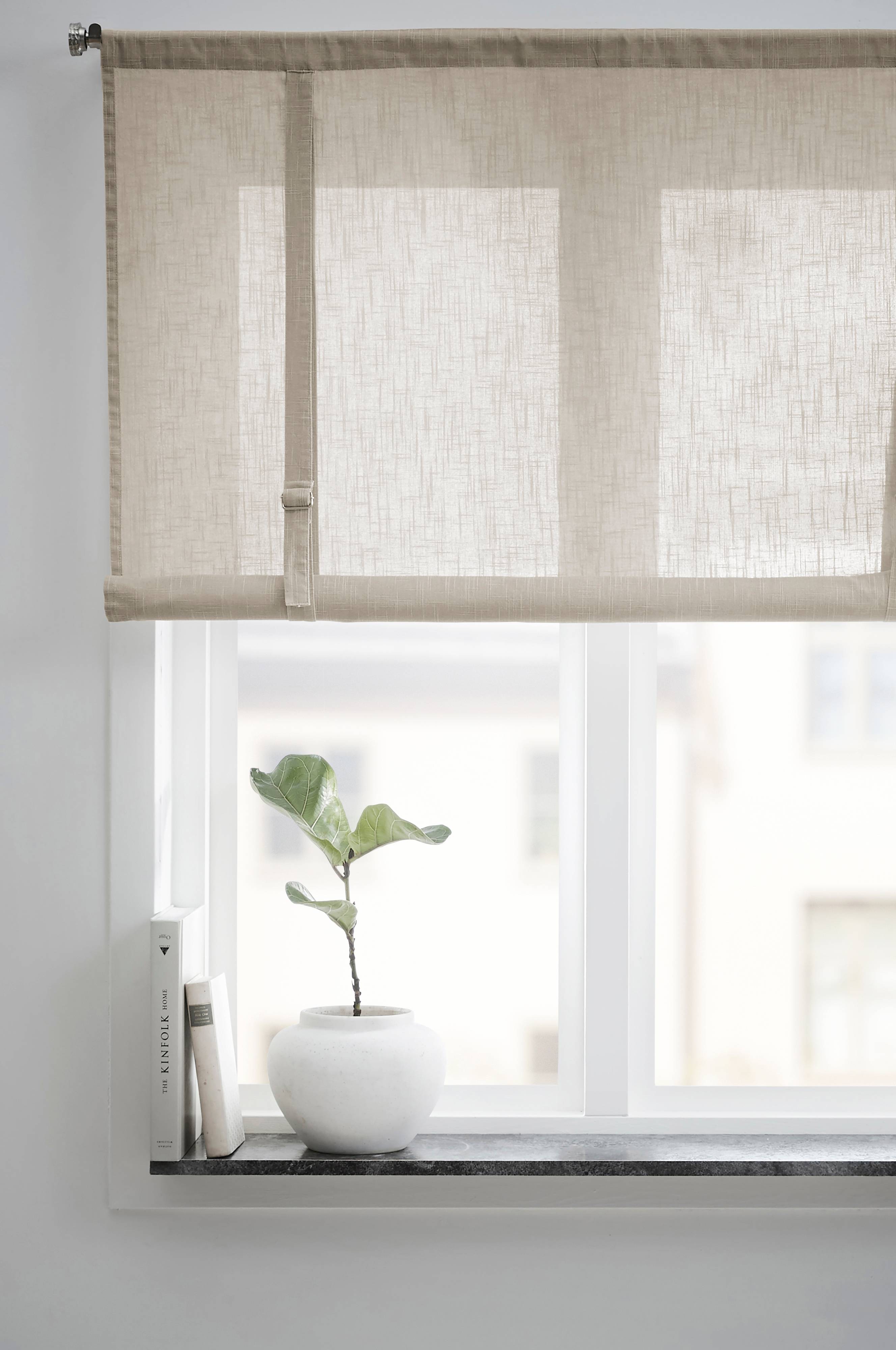Roleta ze spranej, tkanej bawełny typu slub. ÖRGRYTE wykonana jest z tkaniny typu slub o pięknej strukturze, przepłukanej dla właściwego efektu. Tkanina jest farbowana, o białym tyle. Zawieszana na karniszu, wysokość rolety regulowana jest metalową klamrą.