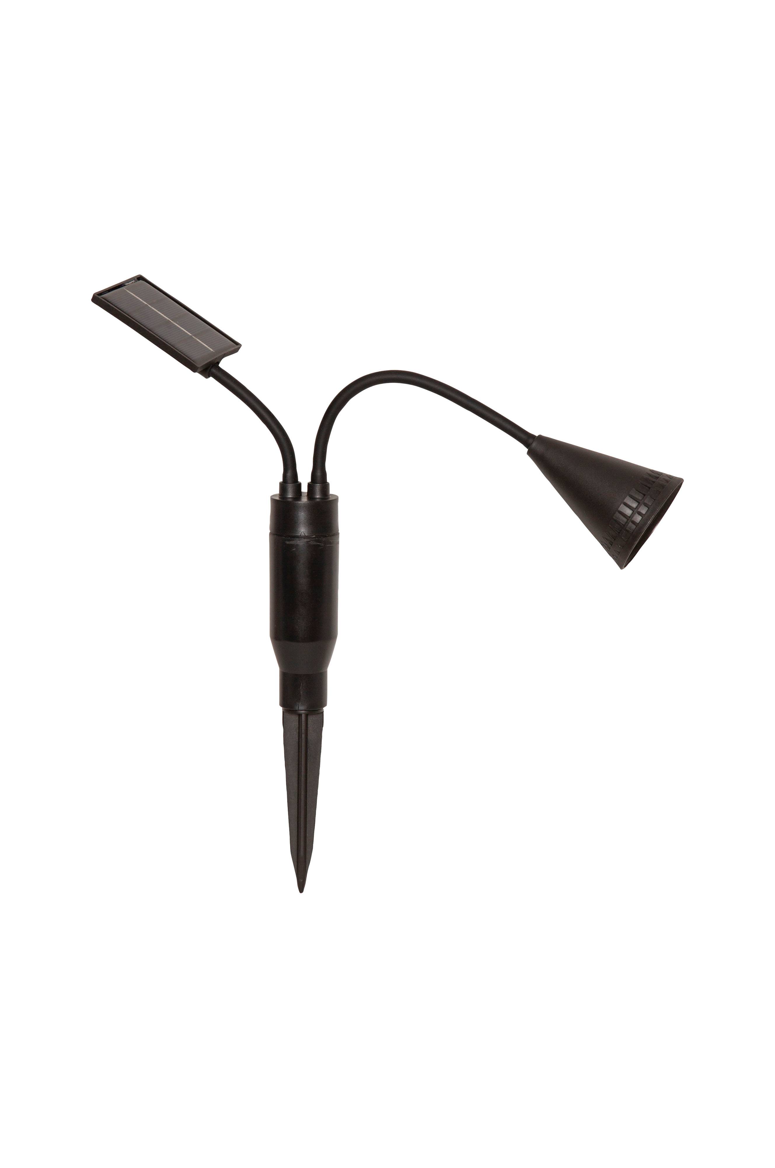 Oświetlenie na ogniwa słoneczne z 1 reflektorem zamontowanym na zginanym ramieniu, dzięki czemu światło można łatwo skierować tam, gdzie ma świecić. Reflektor oświetla ogród lub taras z mocą 20 lumenów w ciemności i jest dobrym wyborem do oświetlenia skierowanego na krzew lub drzewo. Sama część panelowa znajduje się na własnym zginanym ramieniu, co oznacza, że tę część można również obrócić w kierunku słońca w prosty sposób, co jest niezbędne do naładowania dołączonych baterii.
