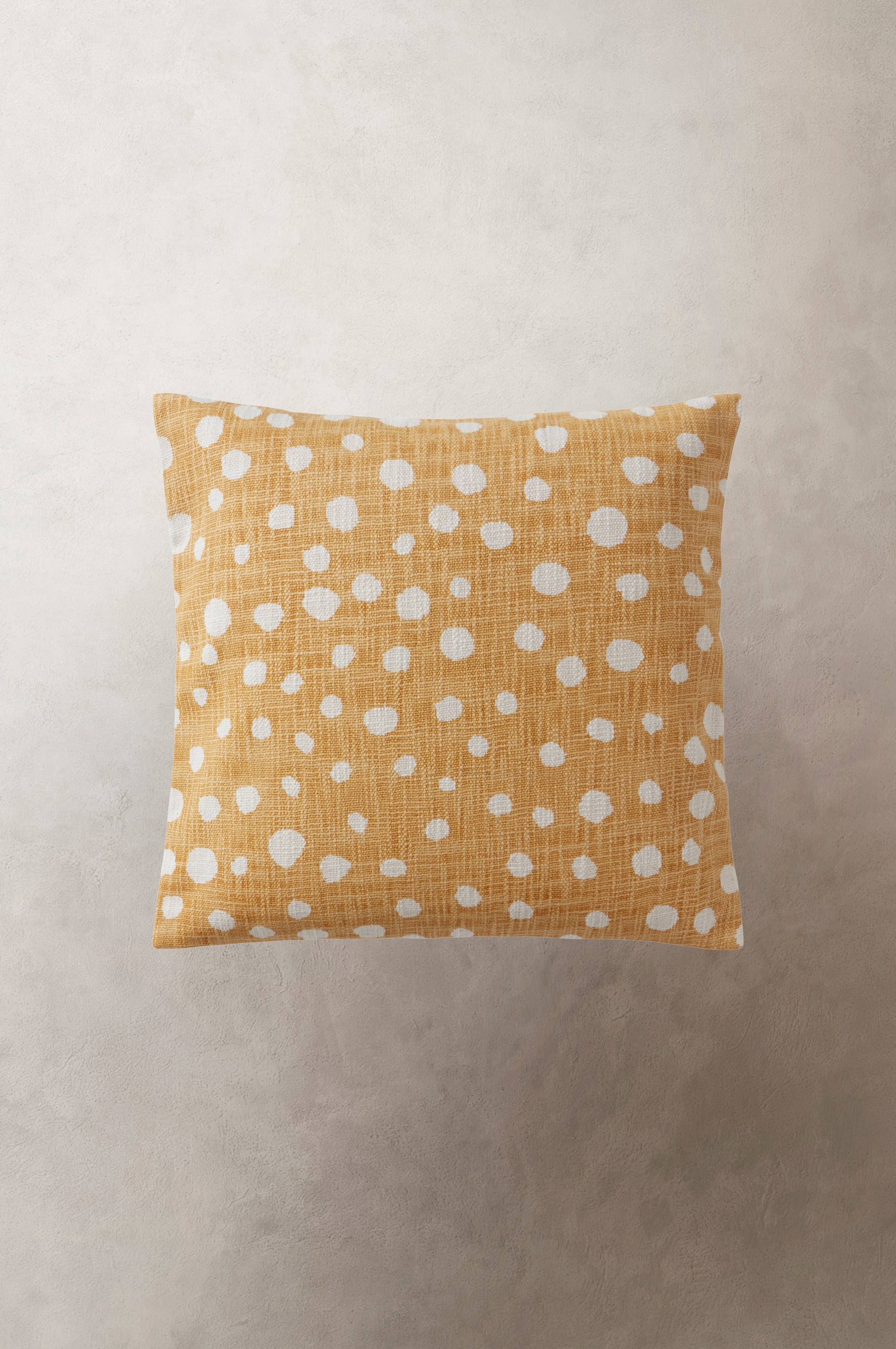 1 dekoracyjna poszewka z bawełny. Przednia strona poszewki wykonana jest z grubo tkanego materiału o węzełkowej strukturze, ozdobionego drukowanym wzorem w kropki. Tylna strona ma naturalny odcień tworzący efekt delikatnego melanżu oraz wszyty niewidoczny zamek błyskawiczny. Przednia i tylna strona poduszki pokryte są tym samym materiałem.