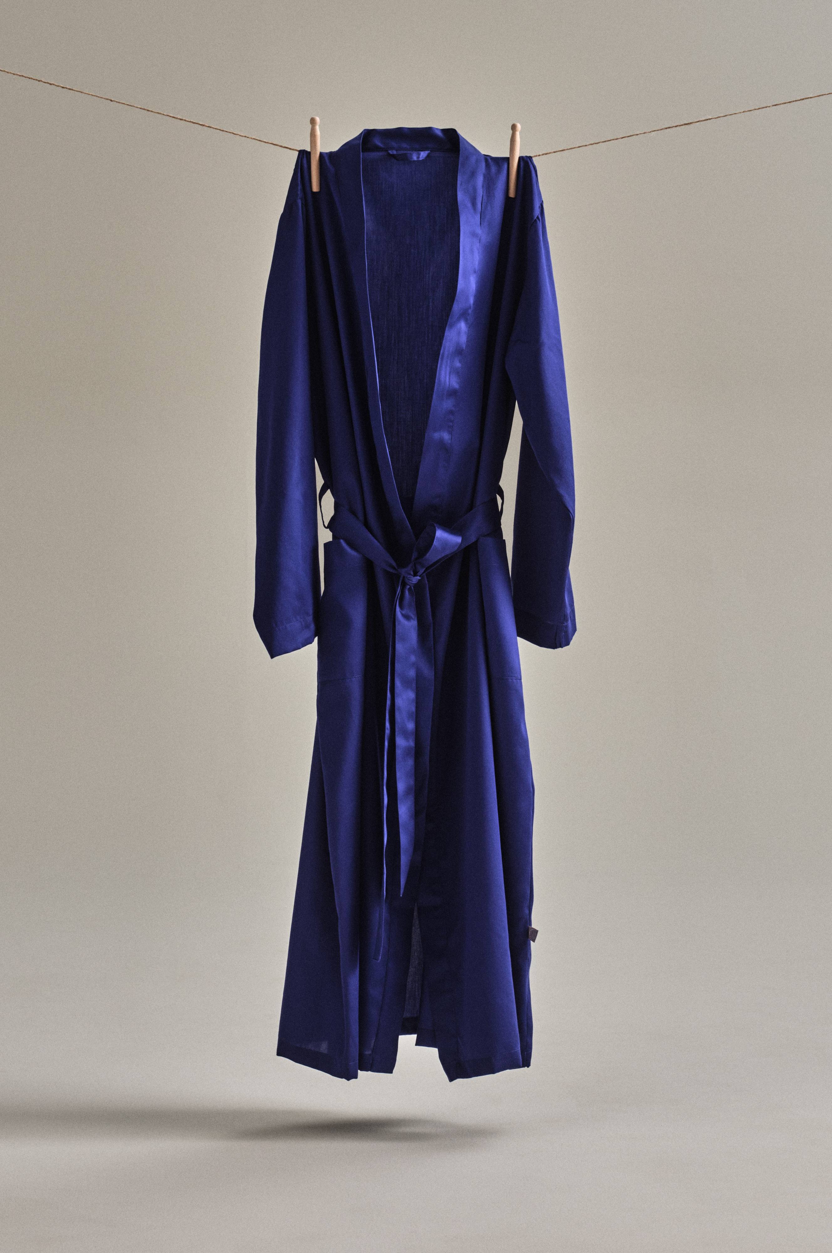 Kimono z gładkiej satyny z bawełny. PAILY jest w dotyku wyjątkowo przyjemna i luksusowa. Satyna to splot tkacki, z którego powstaje cudownie gładka, miękka i delikatna tkanina. Bawełna wykorzystana w procesie tkania tworzy materiał o wspaniałym połysku i luksusowym charakterze. Kimono prezentuje wspaniale wykończony, klasyczny model z dwoma kieszeniami na froncie i wiązanym w talii paskiem. Gęstość splotu materiału wynosi 300 TC. (Gęstość splotu materiału oznacza ilość przeplecionych ze sobą nici, thread count, na cal kwadratowy materiału. Im wyższa gęstość tym lepsza jakość).