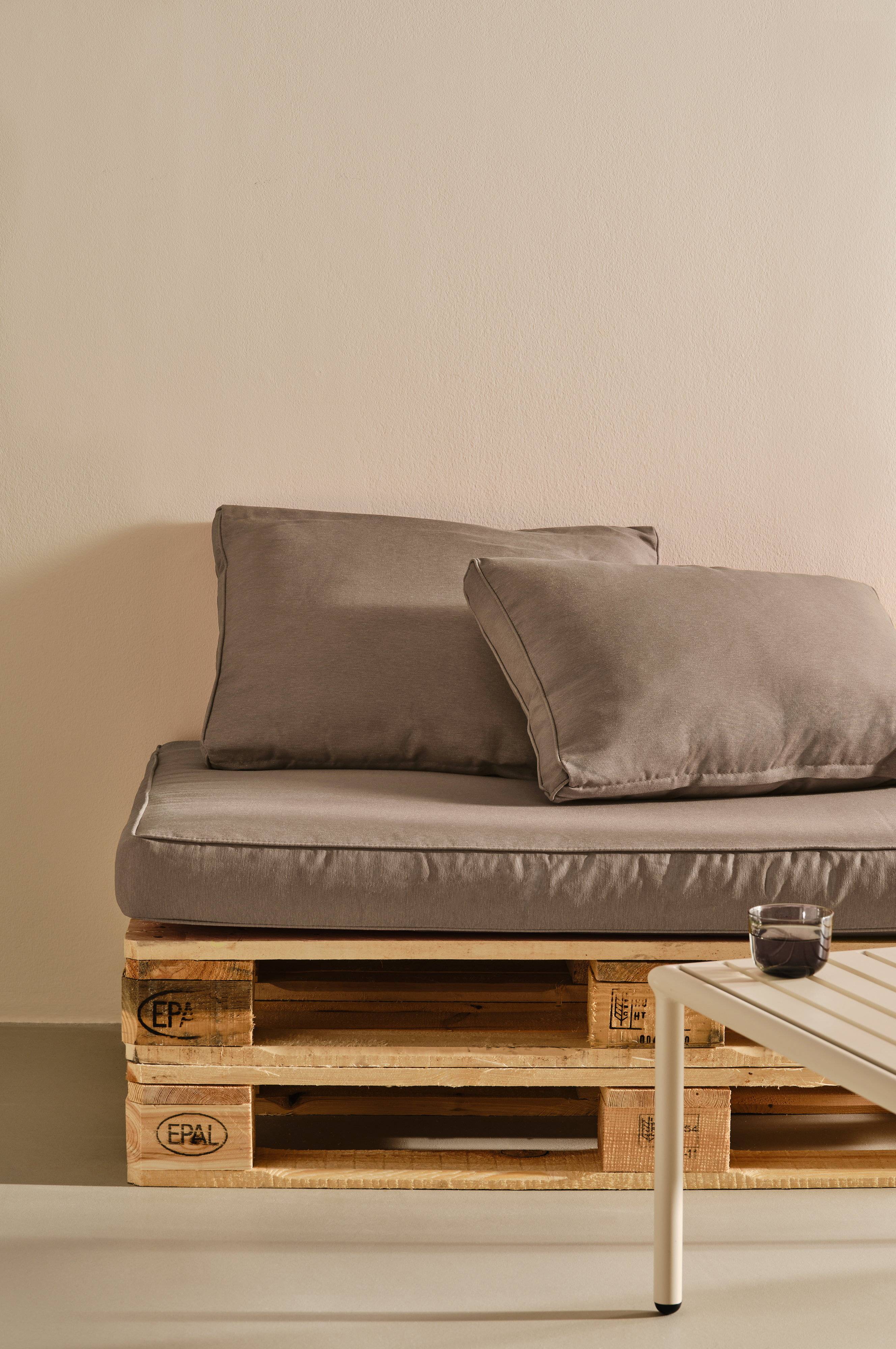 Zestaw poduch na meble ogrodowe. W skład zestawu wchodzą poducha do siedzenia i dwie poduszki pod plecy, które pasują do mebli zbudowanych z drewnianych palet (typu europalety). Pokrowiec poduch wykonano z bawełny, poliestru i włókien pochodzących z recyklingu a wypełnienie z pianki i włókien. Zbudowanie kącika do siedzenia z drewnianych palet nie wymaga specjalistycznej wiedzy, a z pomocą wygodnego zestawu poduch do siedzenia zadanie wyda się zbyt proste, żeby mogło być prawdziwe. Pokrycie jest zdejmowane i zapinane na zamek błyskawiczny na jednej z krawędzi.