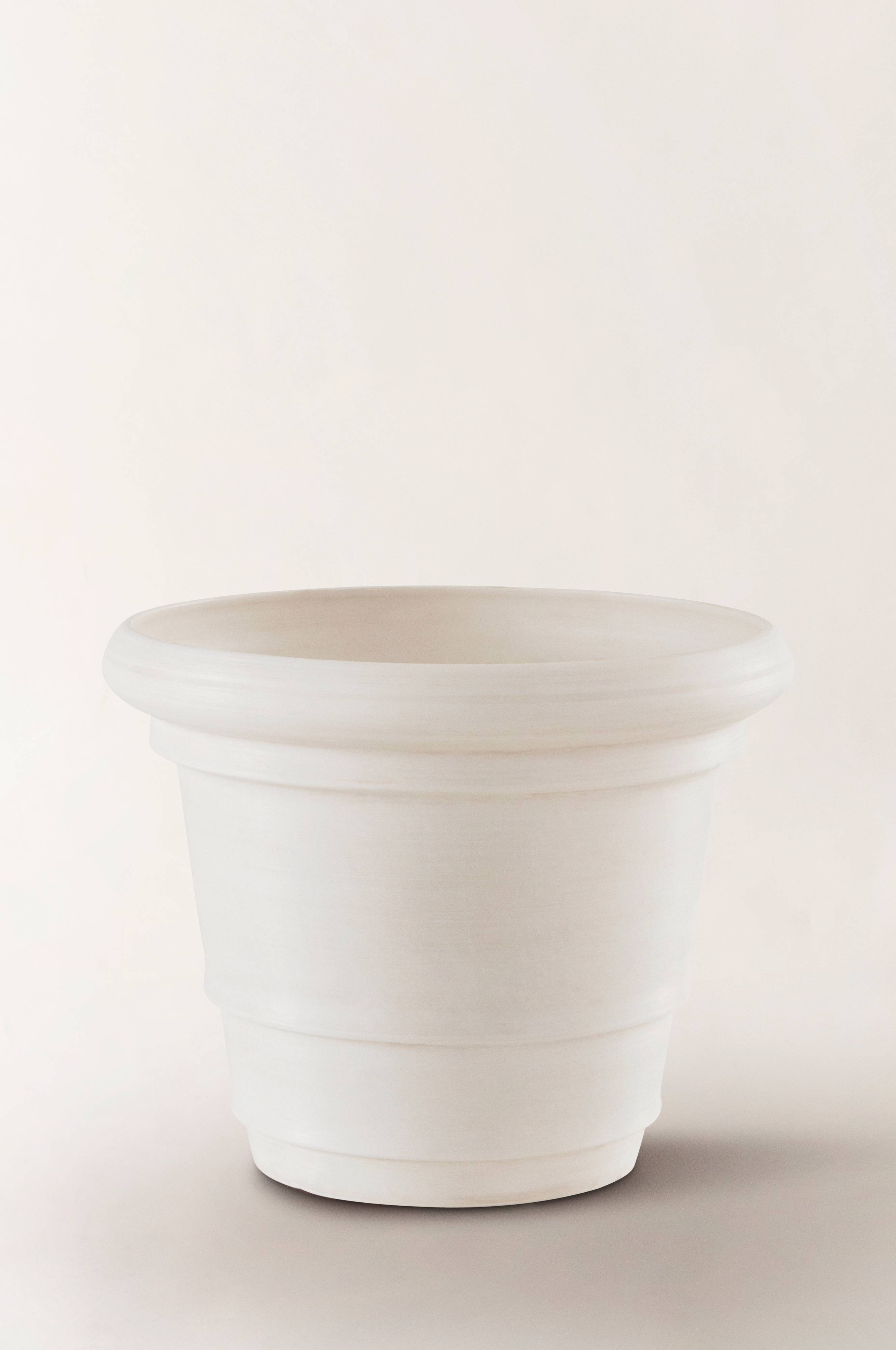 Wygląda zaskakująco podobnie do glinianej doniczki, ale jest lekka! Na dnie znajduje się korek, który po wyjęciu tworzy otwór, więc nadaje się do użytku na zewnątrz. Biały kolor j…