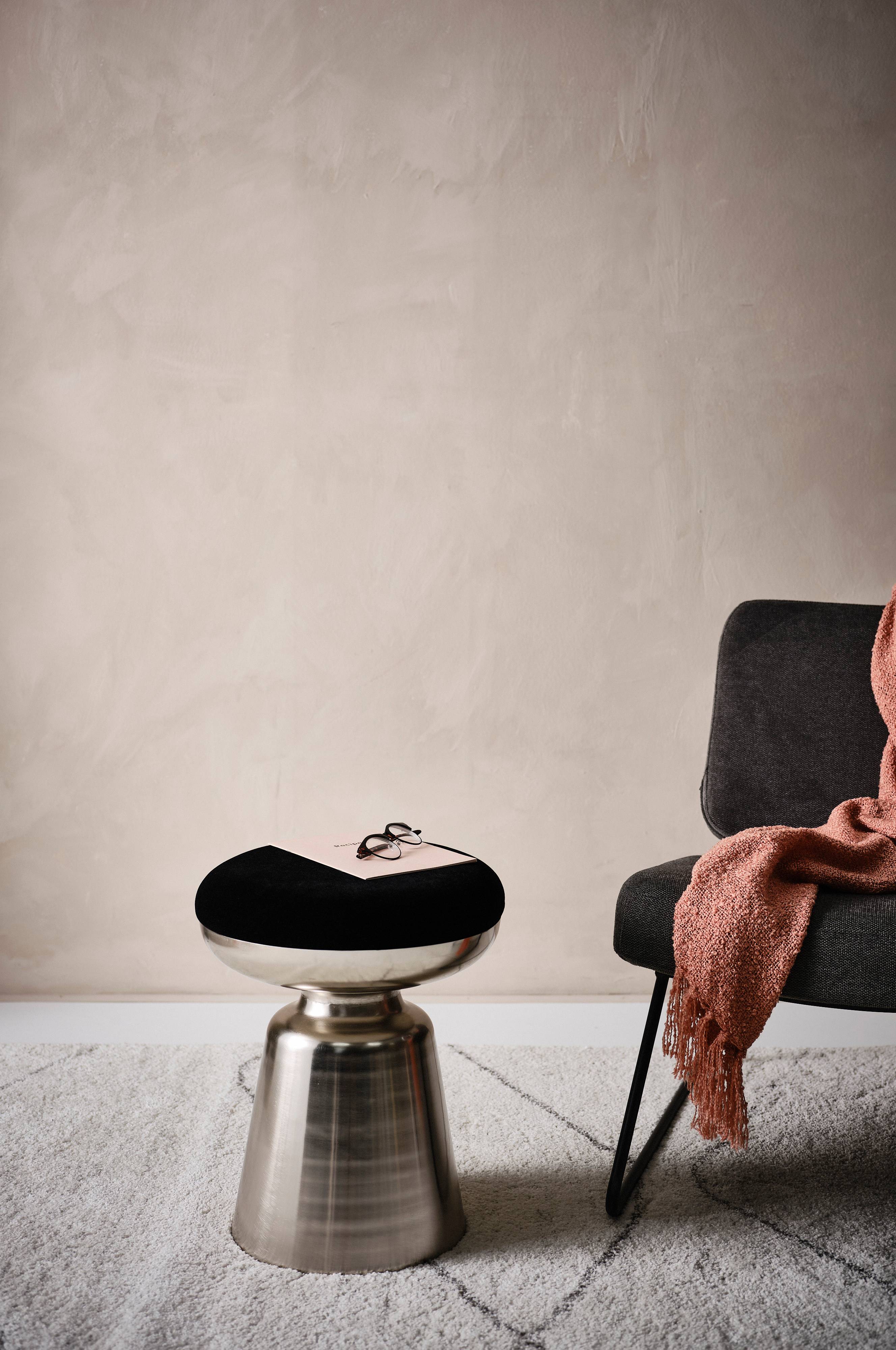 Stolik/stołek z metalu i żelaza z miękką aksamitną poduszką. Gustowny stolik o eleganckim kształcie, który komponuje się z większością wnętrz i stylów. Stolik POLLY można wykorzystać jako stołek, stolik do salonu lub stolik nocny. Jest wiele możliwości więc możesz dać ujście fantazji.