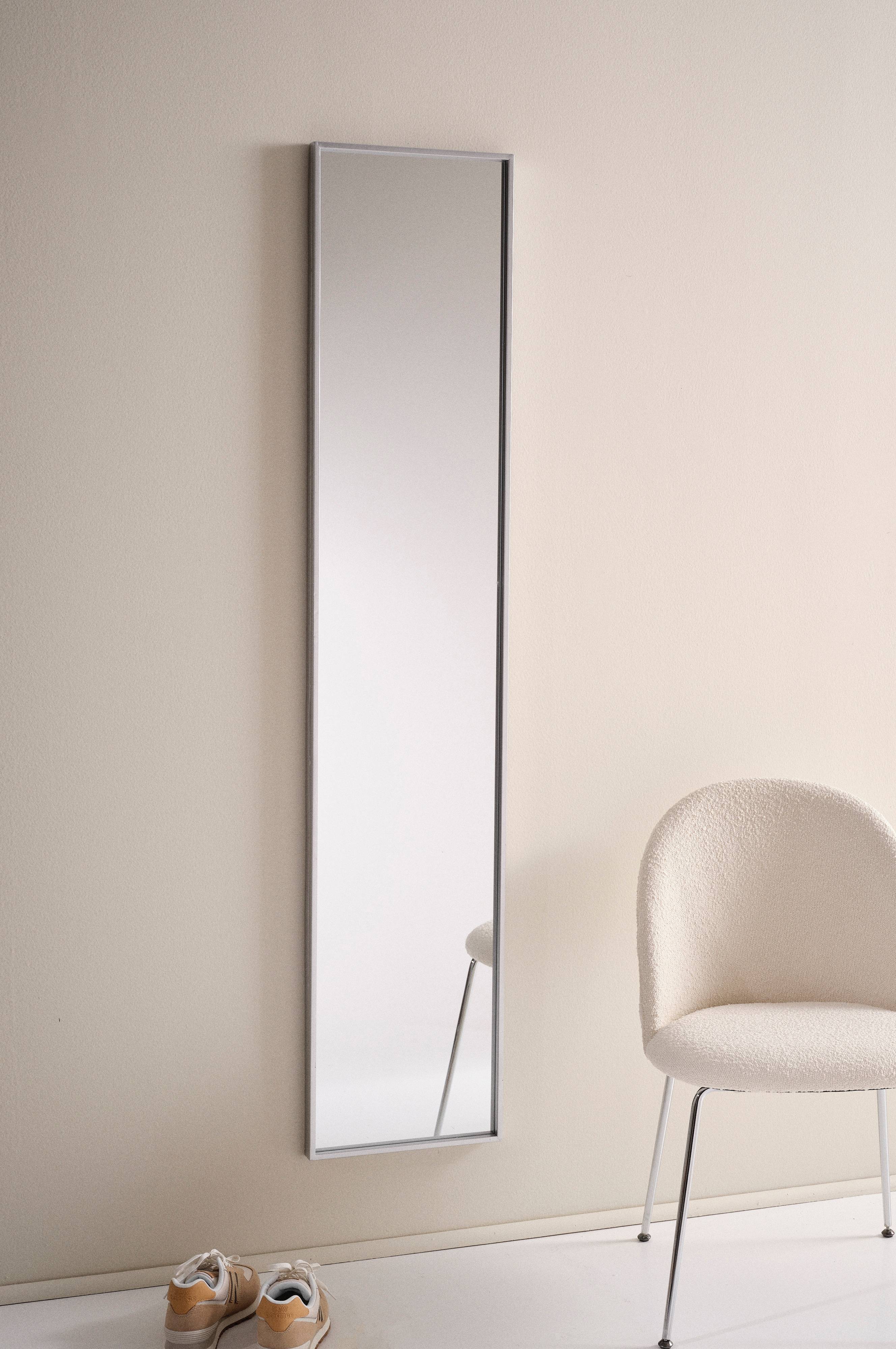 Prostokątne lustro ze stylową, elegancką ramą z metalu z matowym wykończeniem. Lustro wyposażone jest w ukryty uchwyt umieszczony na krótszym boku, dzięki czemu można je zawiesić pionowo. POW to świetne lustro do przedpokoju o niewielkiej powierzchni, które jednocześnie sprawi, że przestrzeń wyda się większa.