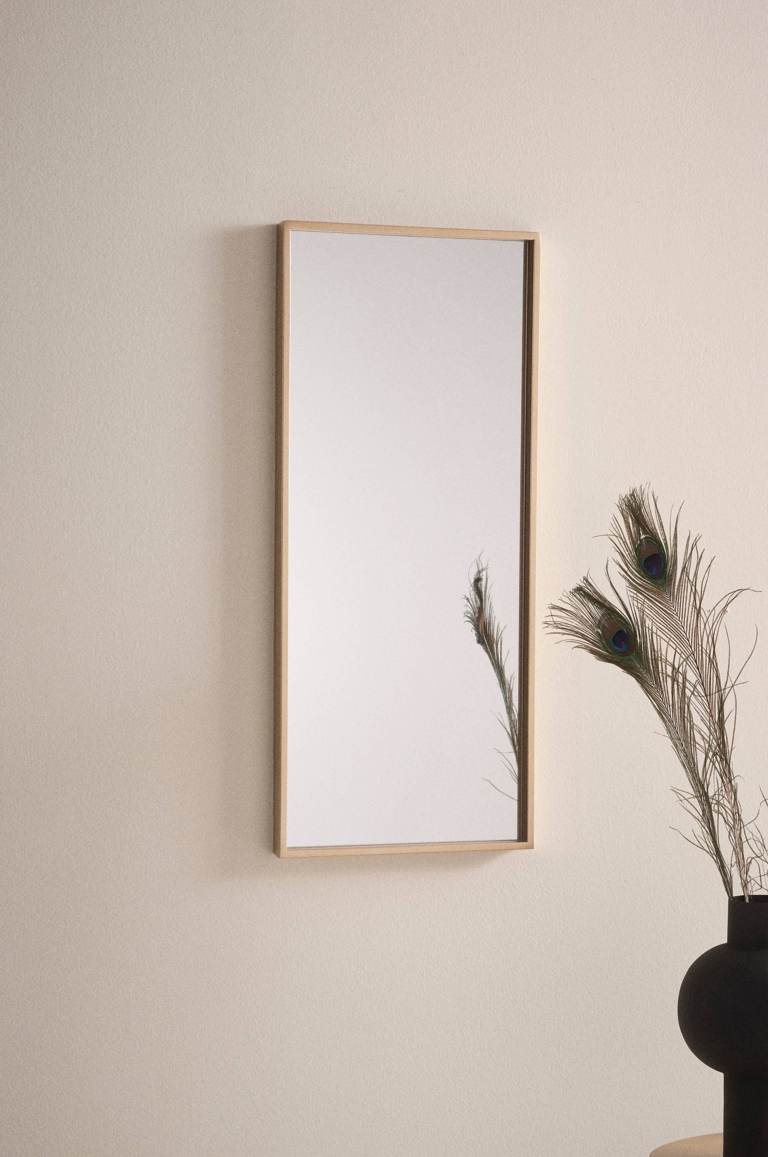 Prostokątne lustro ze stylową, elegancką ramą z metalu z matowym wykończeniem. Lustro wyposażone jest w ukryty uchwyt umożliwiający pionowe i poziome zawieszenie.