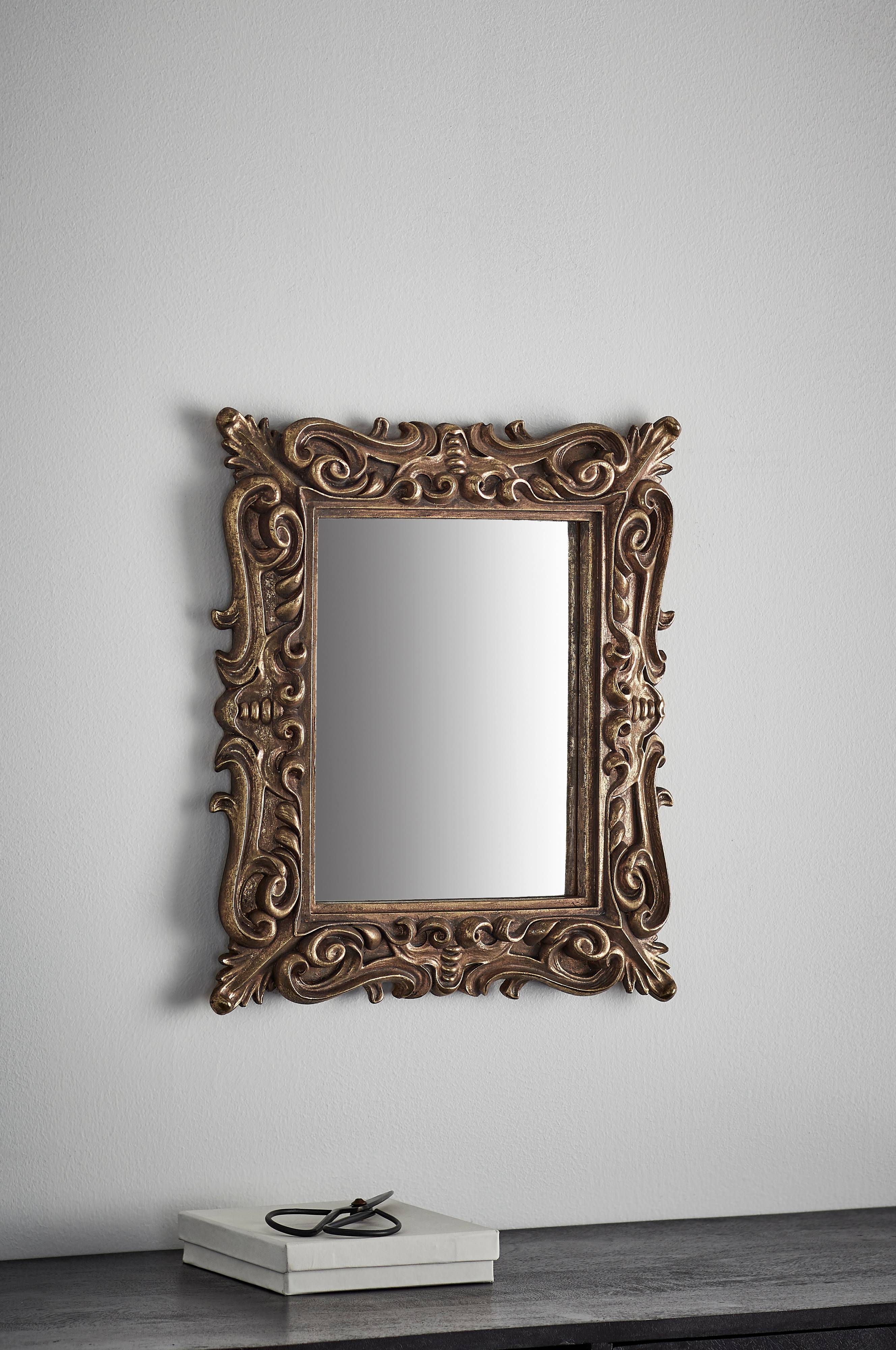 Pięknie zdobione lustro z szeroką ramą z żywicy epoksydowej z antycznym wykończeniem stanie się ozdobą każdego pomieszczenia.