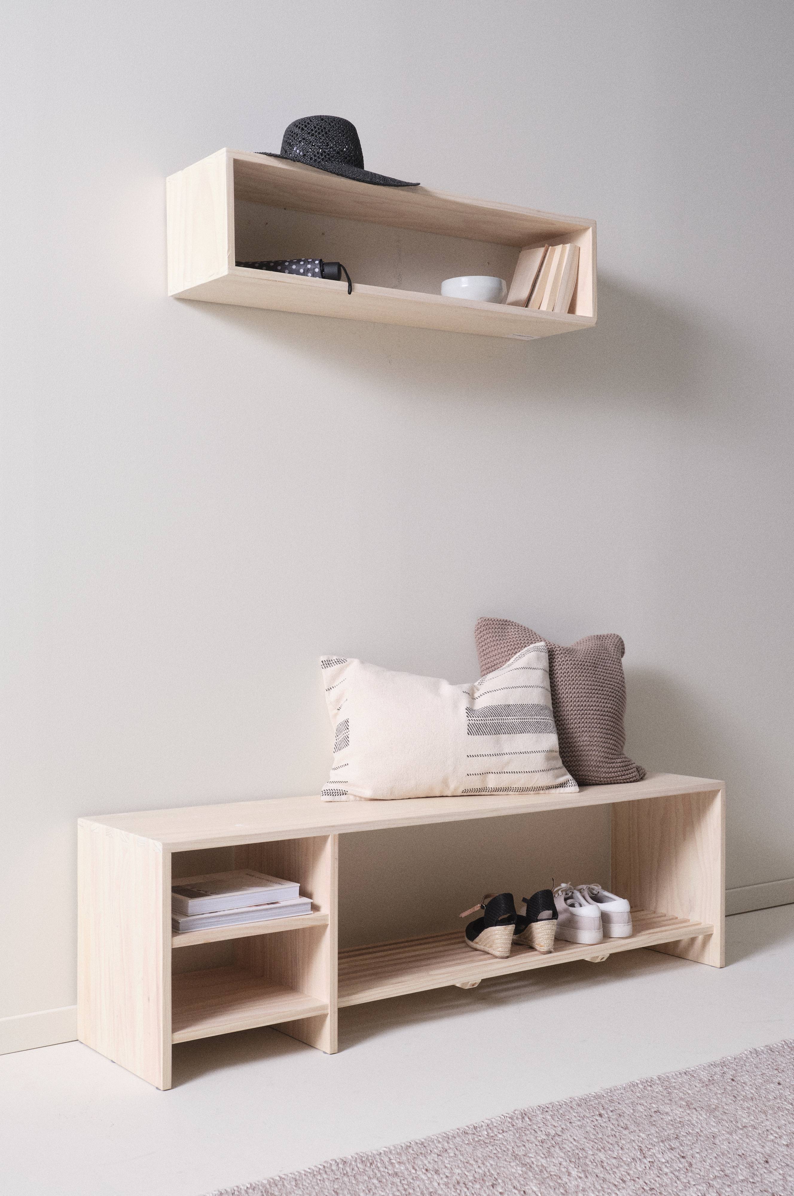 Ławka z półkami do przechowywania i półką na buty, wykonana z litego drewna sosnowego z certyfikatem FSC. Dzięki wspaniałemu, bielonemu wykończeniu seria REYKJAVIK promienieje nordycką prostotą. Ławka ta odznacza się elegancją i nie posiada tylnej ścianki, dzięki czemu ściana efektownie prześwieca zza półki. Dzięki połączeniu na „jaskółczy ogon" boki zyskują solidne i piękne łączenie, a krawędzie półki stają się uroczym detalem. Z jednej strony ławka posiada dwie półki do przechowywania, a z drugiej miejsce do przechowywania obuwia wykonane z czworobocznych prętów. Praktyczny mebel sprawdzi się idealnie w przedpokoju, zapewniając jednocześnie miejsce do siedzenia i przestrzeń do przechowywania.