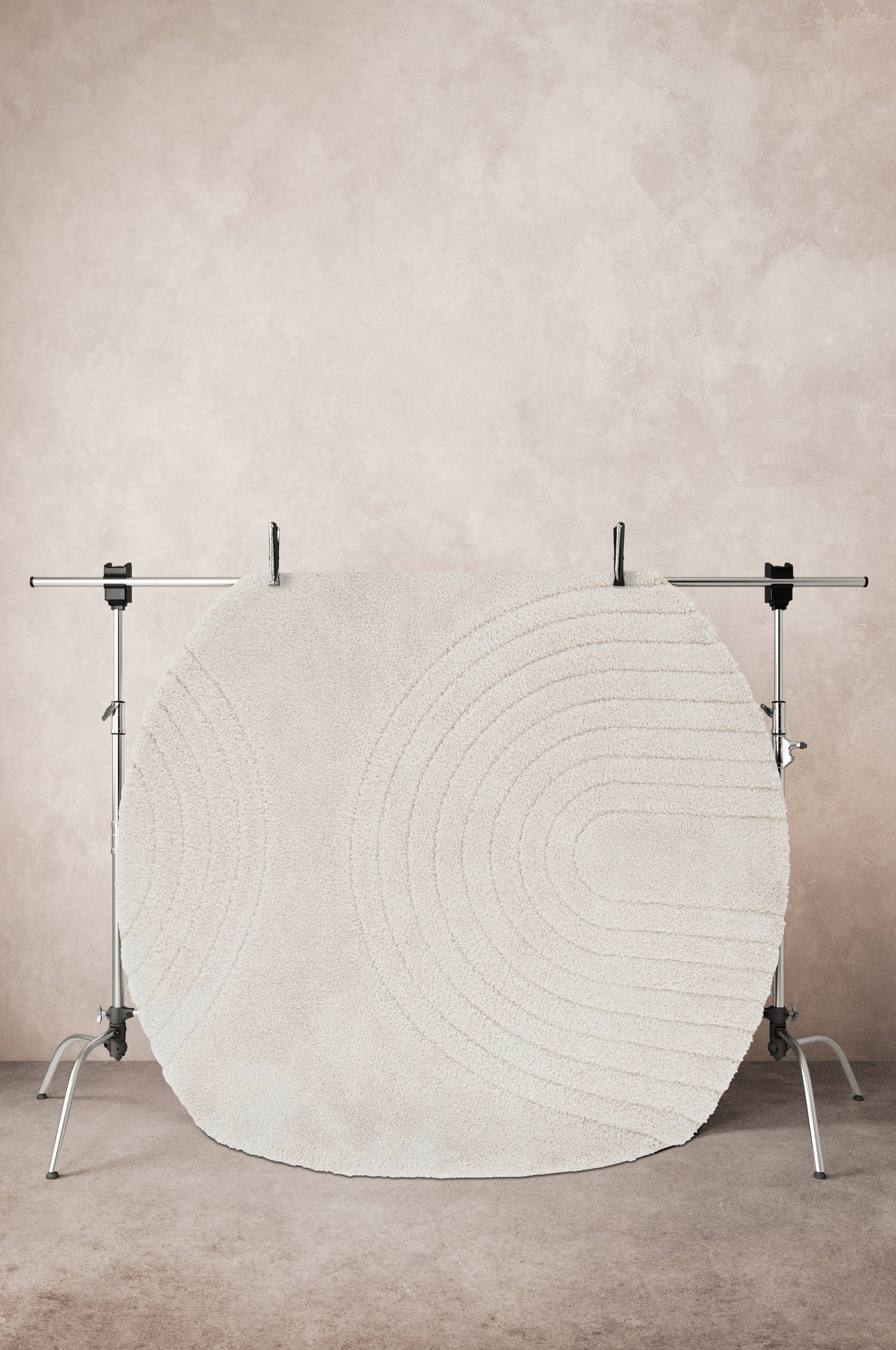 Gładki, okrągły dywan z włosia ozdobiony dyskretnym, wypukłym wzorem. Miękki i przyjemny dywan, który swoim okrągłym kształtem pogłębi przytulną atmosferę w pokoju. Długość włosia 2,2 cm. Grubość 2,5 cm. 2250 g/m².