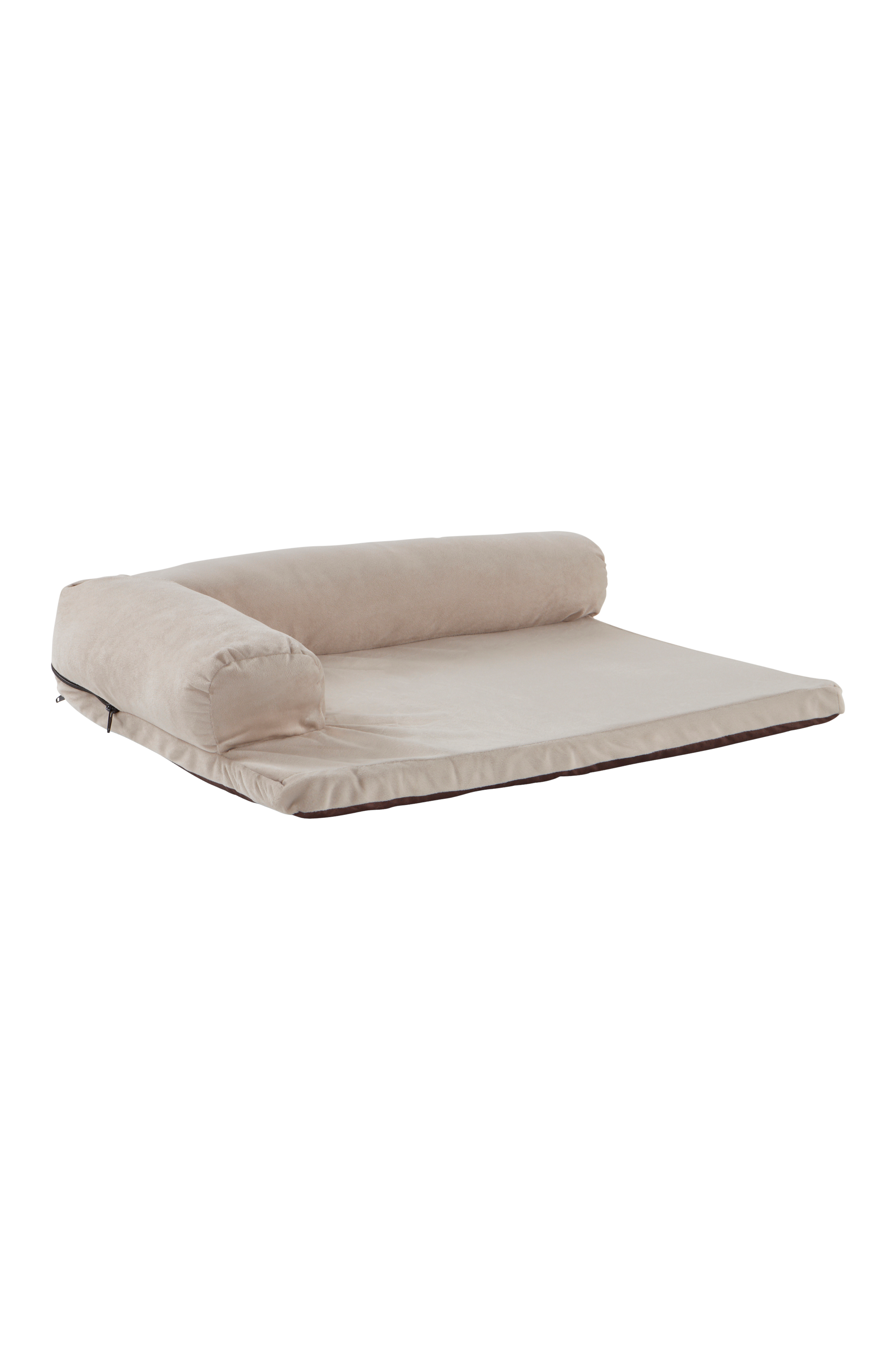 Piękne legowisko obite tkaniną z poliestru i wypełnione miękką watą poliestrową. Spód wykonany jest z gumy piankowej. Dwie ścianki wypełnia miękka wata, dzięki czemu wygodnie się uginają i łatwo się dopasowują do zwierzaka, które skuli się w rogu, jednocześnie dwa boki nieosłonięte ściankami zapewniają dużo miejsca, kiedy Twój pupil potrzebuje się przeciągnąć. Legowisko SAM sprawdzi się również dla psów, które nie potrzebują dodatkowej osłony przed zimnem. SAM to naturalnie doskonałe legowisko także dla kotów.