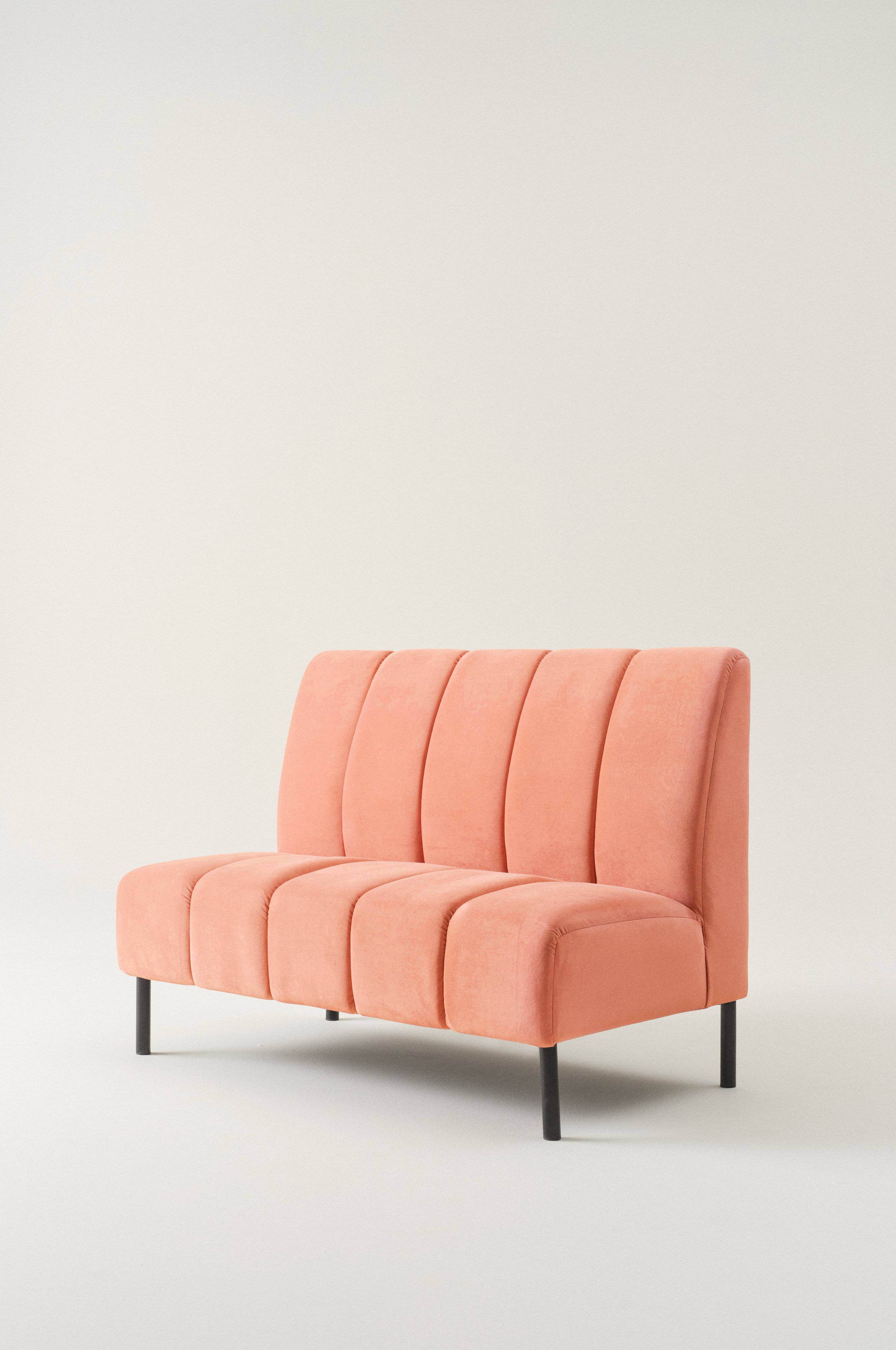 Piękne aksamitne pokrycie wykonano z pochodzącego z recyklingu poliestru o wysokiej odporności na przecieranie rzędu 40000 cykli Martindale'a. Rama wykonana jest ze sklejki i drewna sosnowego, przy czym całość drewna posiada certyfikat FSC. W konstrukcji sofy połączono sprężyny faliste z pianką i poliestrowym wypełnieniem, dzięki czemu siedzi się na niej wyjątkowo wygodnie. Okrągłe nóżki wykonano z metalu lakierowanego na czarno metodą proszkową. Jeżeli kupisz kilka modułów, połączysz je ze sobą za pomocą dołączonych metalowych zaczepów. Pokrycie nie jest zdejmowane. Wymaga częściowego montażu. Do produktu dołączona jest instrukcja.
