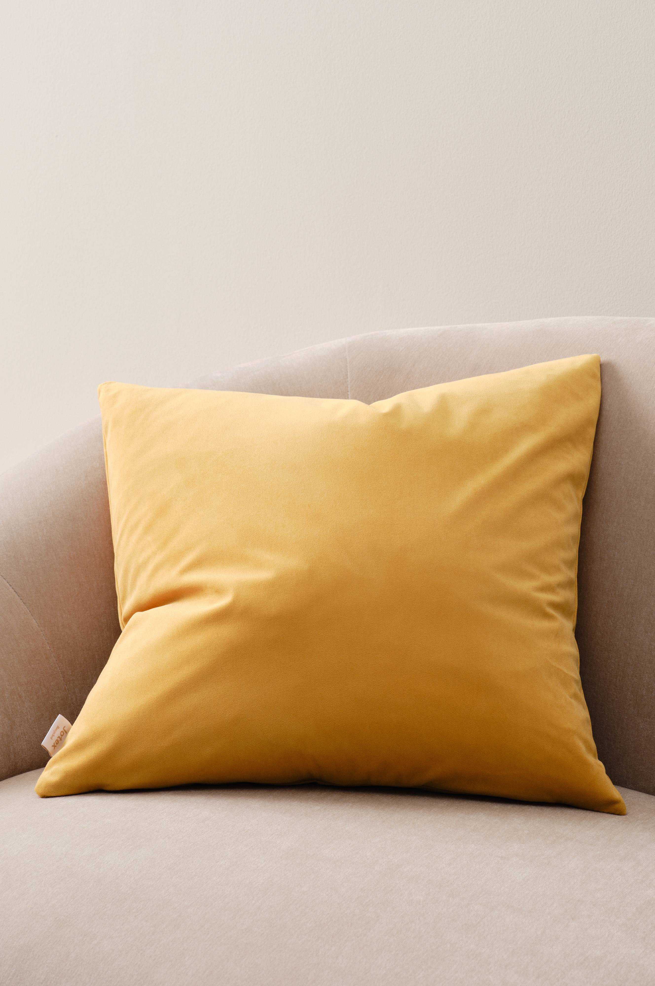 Poszewka na poduszkę wykonana z jednokolorowego, poliestrowego aksamitu. Połyskliwy aksamit jest miękki w dotyku i mieni się różnymi odcieniami w zależności od kąta padania światła. Poszewka posiada zamek błyskawiczny w spodniej krawędzi.