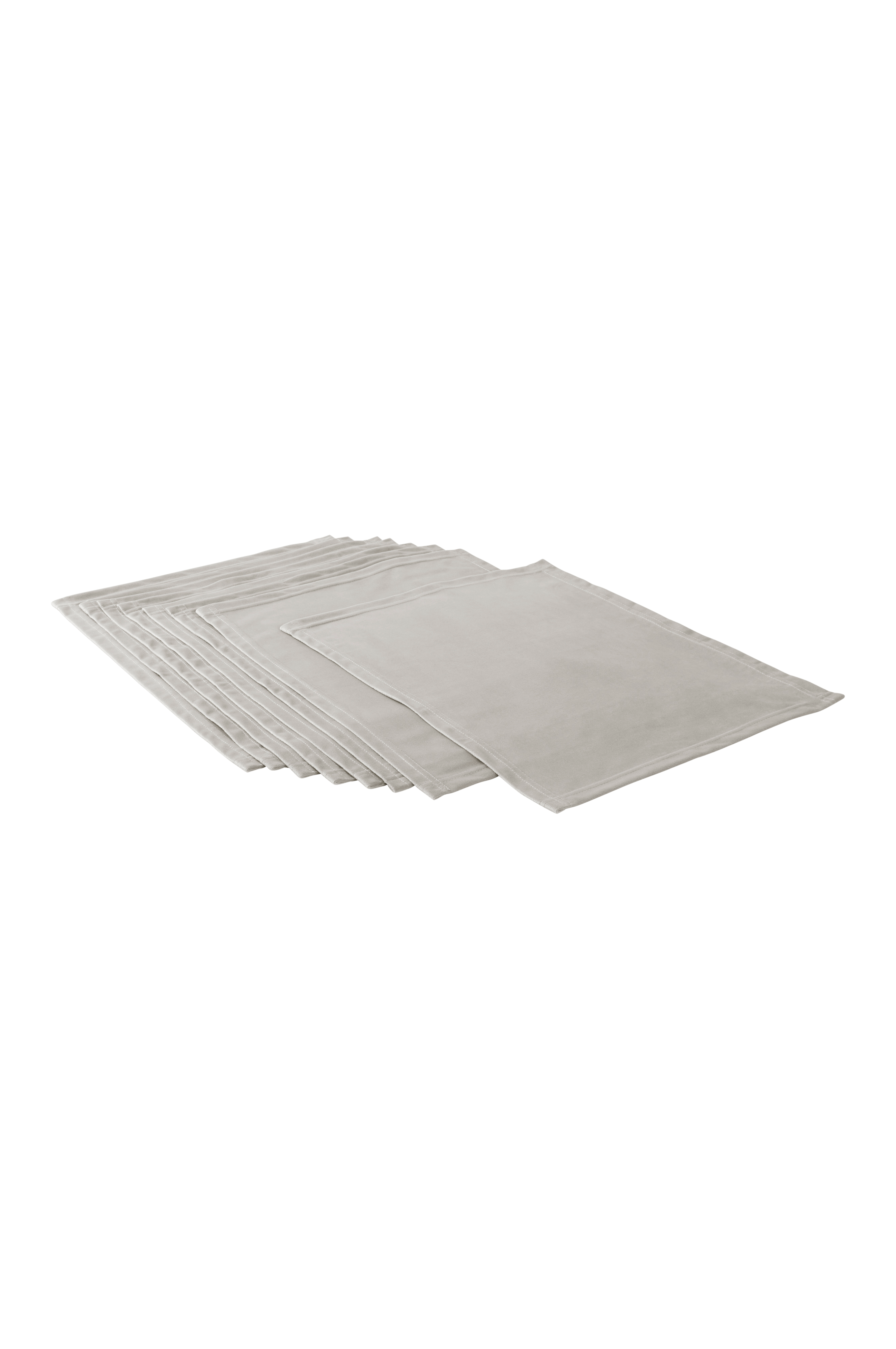 8 mat stołowych wykonanych z jednokolorowego, poliestrowego aksamitu. Połyskliwy aksamit jest miękki w dotyku i mieni się różnymi odcieniami w zależności od kąta padania światła.